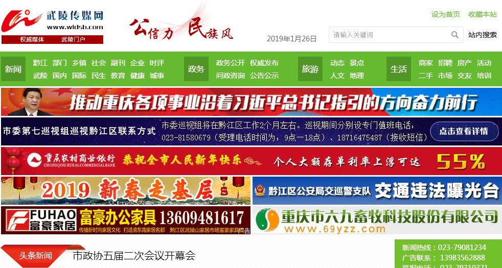 | 网站简介: 武陵传媒网包括黔江的新闻,二手,房产,人才,企业,论坛,商家,娱乐等资讯及互动信息,只要你生活在黔江,想了解黔江最新动态,就要上武陵传媒网。 |