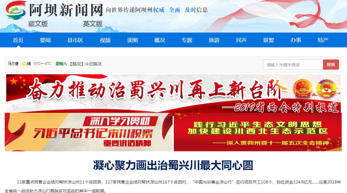阿坝新闻网由中共阿坝州委宣传部主管,阿坝日报主办。