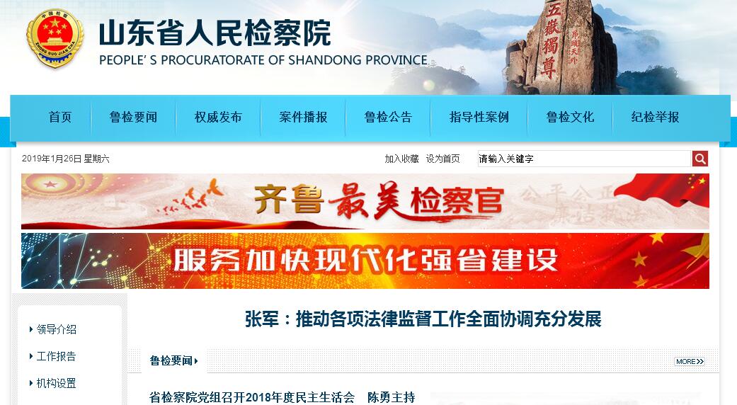 山东省人民检察院主要职责:(一)依法向省人民代表大会及其常务委员会提出议案。(二)领导全省各级人民检察院的工作,部署全省检察工作任务。(三)对全省性的重大刑事案件依法审查批准逮捕、决定逮捕、提起公诉;领导全省各级人民检察院开展对刑事犯罪案件的审查批准逮捕、决定逮捕、提起公诉工作。(四)领导全省各级人民检察院依法对刑事诉讼、民事审判和行政诉讼实行法律监督的工作。(五)领导全省各级人民检察院依法对执行机关执行刑罚的活动是否合法实行监督。(六)对省高级人民法院确有错误的第一审的判决和裁定,依法向最高人民法院提出抗诉;对下级人民法院已经发生法律效力、确有错误的判决和裁定,依法向省高级人民法院提出抗诉。(七)对全省各级人民检察院在行使检察权中作出的决定进行审查,纠正错误决定。(八)受理单位和个人的报案、控告、申诉、举报以及犯罪嫌疑人的自首,并领导全省检察机关的举报工作。(九)规划和指导全省检察机关的检察技术工作。(十)负责全省检察机关队伍建设和思想政治工作;领导全省各级人民检察院依法管理检察官及其他检察人员的工作;协同省主管部门管理全省检察机关的机构编制工作。(十一)协同省委主管部门管理和考核省辖市人民检察院检察长;协同省辖市党委管理和考核省辖市人民检察院副检察长;提请省人民代表大会常务委员会批准或不批准省辖市人民检察院检察长的任免;提请省人民代表大会常务委员会决定任免省人民检察院副检察长、检察委员会委员、检察员以及省人民检察院济南铁路运输分院检察长、副检察长、检察委员会委员和检察员;建议省人民代表大会常务委员会撤换下级人民检察院检察长、副检察长和检察委员会委员。(十二)组织指导全省检察机关干部教育培训工作,规划和指导培训基地及师资队伍建设等工作。(十三)规划和指导全省检察机关的计划财务装备工作。(十四)组织全省检察机关的对外交流,开展有关的国际司法协助工作;办理涉外个案协查工作。(十五)管理机关工作人员和本院事业单位的干部;审批本院事业单位的工作计划和发展规划。(十六)负责其他应当由省人民检察院承办的事项。