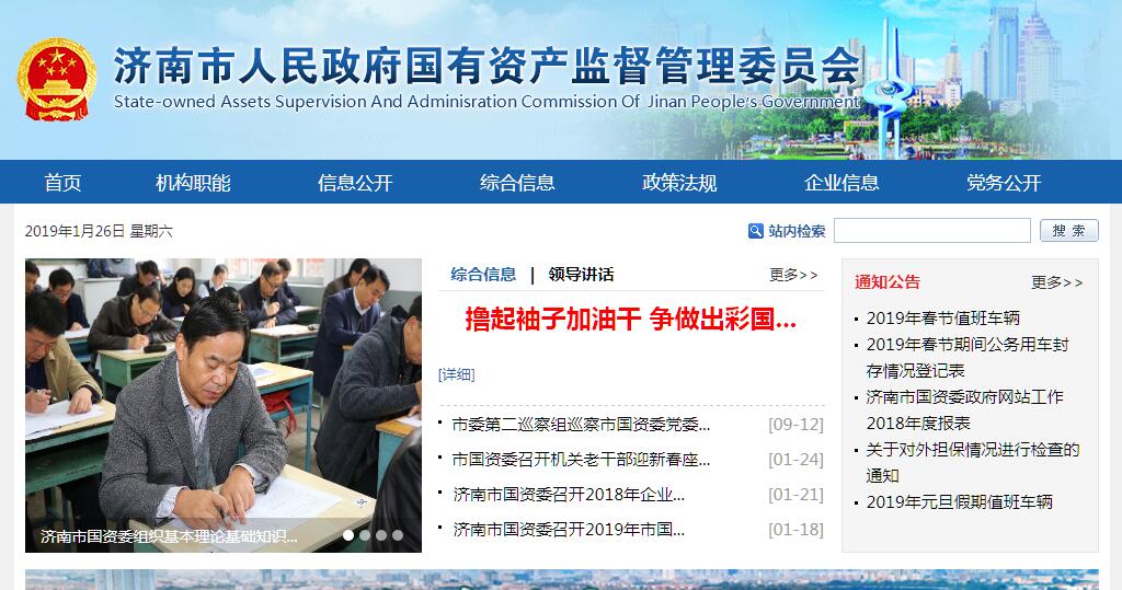 根据省委、省政府批准的《济南市人民政府职能转变和机构改革方案》(鲁厅字〔2014〕37号),设立济南市人民政府国有资产监督管理委员会(以下简称市国资委),为市政府工作部门。其主要职责:(一)贯彻执行企业国有资产监督管理工作法律、法规和方针、政策,起草有关地方性法规、规章草案,对县、区企业国有资产监督管理工作进行指导和监督。(二)根据市政府授权,依法履行出资人职责,监管市属企业国有资产,承担监督所监管企业国有资产保值增值的责任。(三)负责拟订优化市属国有资本布局结构的规划,提出市属国有资本战略性调整、产业及企业重组整合的方案,推动国有资本有序进退。(四)负责国有资本授权经营体制改革,承担改建组建国有资本投资、运营公司有关工作。(五)分类推进国有企业改革,完善现代企业制度,指导推进市属企业公司制、股份制和混合所有制改革;承担市国有企业改革改制领导小组办公室工作。(六)制定、修改所监管企业章程;审议批准董事会、监事会报告;依法对属于股东会职权的事项进行审批或作出决议;根据有关法律法规和权限,决定或审核企业合并、分立、解散、清算、破产、增减资本金等关系国有资产出资人权益的重大事项。(七) 指导市属企业完善法人治理结构;按法律规定和出资比例委派董事、监事;代表市政府派出监事会,承担市国有企业监事会办公室工作,负责外派监事会日常管理工作;推行职业经理人制度;按照管理权限和法定程序对企业领导人员进行任免和考核;负责市属企业人才队伍建设。(八)参与制定国有资本经营预算有关管理制度和办法,提出履行出资人职责的国有资本经营预算草案;监督出资企业上缴国有资本收益。(九)制定市属企业负责人经营业绩考核和薪酬管理制度;组织实施所监管企业年度和任期考核,确定负责人薪酬和奖惩意见;指导市属企业收入分配制度改革,推进实施经营管理者中长期激励。(十)监测国有资本运营质量,监督企业财务状况;推动市属企业实施财务等重大信息公开;负责企业国有资产基础管理,监督国有资产进场交易。(十一)负责完善市属企业审计监督体系,组织实施出资人审计,对国有资产流失或有关事项实施稽查;对违法违规决策经营造成国有资产损失的负责人进行责任追究。(十二)承办市委、市政府交办的其他事项。