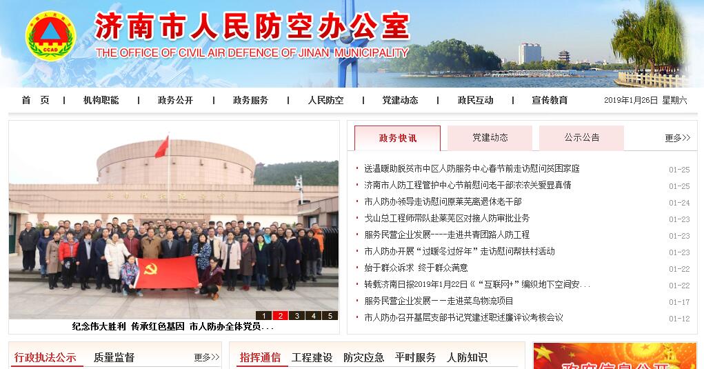 济南市人民防空办公室主要职责:(一)贯彻执行国家、省关于人防工作的法律、法规和方针、政策,起草人防建设的地方性法规、规章草案,拟定人防建设规划并组织实施。(二)负责编制全市人防建设专项规划和计划,并组织实施;负责组织编制城市平战结合防护建设发展规划,参与城市总体规划中落实人防防护要求的审核和城市地下空间开发利用规划的编制,并监督检查人防要求落实情况。(三)组织实施人防指挥工作。制定防空袭方案和相关保障计划,负责全市人口疏散体系建设;组织指导防空袭演习演练;组织开展重要经济目标防护工作;组织指导群众防空组织的建设和训练工作。(四)组织管理全市人防工程建设。执行国家人防工程防护标准和质量标准,负责人防工程设计、监理、质量监督有关工作;负责地下防护建筑建设管理,参与城市应建防空地下室的民用建筑计划和项目报建联审,按照国家有关规定负责防空地下室防护方面的设计审查和质量监督;监督管理结合民用建筑修建防空地下室工作。(五)组织人防信息化体系建设。负责市级人防信息化平台建设与管理,负责全市人防通信警报、信息网络建设管理;协调利用电信、军队通信网等专用网保障人防通信警报工作;会同无线电管理部门实施人防无线电专用频率管理。(六)组织人防平战结合和防空防灾一体化建设;组织实施指挥、工程、通信警报、疏散体系及群众防空组织等人防战备资源的平时开发利用;利用防空警报发布灾情警报,参与政府应急管理和城市防灾救灾、抢险救援工作。(七)负责组织开展人防科学技术研究和宣传教育。(八)按照有关规定管理省、市人防经费和国有资产,编制全市人防经费预决算;负责结合民用建筑修建防空地下室征缴易地建设费工作;监管人防系统国有战备资产。(九)组织全市人防机关“准军事化”建设;协助管理县区人防部门领导班子成员任免;负责全市人防系统的战备值勤和应急值班工作。(十)战时在市人防指挥部的统一领导下,根据有关命令、指示,发布空袭警报、实施灯火和交通管制;组织实施群众疏散和隐蔽方案;组织群众防空组织消除空袭后果,防范次生、衍生灾害;协助有关部门恢复生产生活秩序;为市人防指挥所提供后勤保障。(十一)承担市人民防空工作军政联席会议的日常工作。(十二)承办市委、市政府、警备区和市国防动员委员会交办的其他事项。