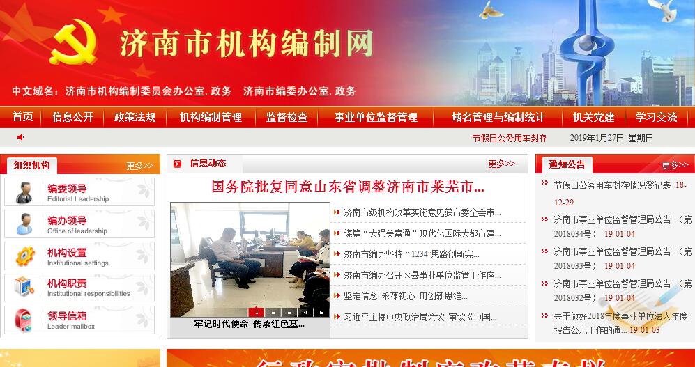 济南市机构编制委员会办公室主要职责:(一)贯彻执行党和国家行政管理体制改革、机构改革和机构编制管理的方针政策和法律法规,以及省委、省政府和市委、市政府的有关决定;起草相关地方性法规、规章草案;研究行政管理体制改革重大问题并提出政策建议;拟订全市机构编制管理政策、制度并监督实施。(二)负责全市各级党政机关,人大、政协、法院、检察院机关,民主党派、人民团体机关机构改革和机构编制管理有关工作;指导全市行政管理体制改革、机构改革和机构编制管理工作。(三)负责全市各级机关和事业单位机构编制总量管理;拟订全市行政编制分配、调整方案和事业单位机构编制总量控制方案;推进机构编制实名制管理,负责指导建立和完善机关事业单位人员入(减)编审批制度;会同有关部门健全完善机构编制、人员与财政预算相结合管理机制。(四)拟订市级机关机构改革方案,经批准后组织实施;审核市级机关主要职责、内设机构和人员编制规定草案;审核县(市)区机构改革方案,负责县(市)区机构改革方案的备案管理工作。(五)按照管理权限,审批、审核市和县(市)区机关机构设置、职责配置、人员编制、领导职数等事项;协调市级机关各部门之间和市级机关各部门与县(市)区之间的职责分工。(六)推进全市事业单位管理体制改革,拟订市属事业单位分类改革政策并组织实施;审核市直属事业单位和市级机关(单位)所属事业单位分类改革方案;拟订全市事业单位编制标准;按照管理权限,审批、审核市直属、市级机关(单位)所属和县(市)区属事业单位机构设置、职责配置、经费来源、人员编制、领导职数等事项;审核全市事业单位设立、调整立项计划。(七)监督检查全市机构编制管理法律法规、政策、制度的执行情况,以及机构改革方案和部门“三定”规定的落实情况;建立健全机构编制工作考核评估制度;负责受理违反机构编制管理规定问题的举报,会同有关部门查处机构编制违法违纪行为。(八)制定全市事业单位登记管理实施办法并组织实施,依法对市直事业单位进行登记管理;拟订市直事业单位考核管理实施细则并监督执行。(九)负责全市机构编制统计工作;建立健全机构编制信息化管理体系;指导全市机构编制系统信息化建设。(十)承办市委、市政府和市机构编制委员会交办的其他事项。