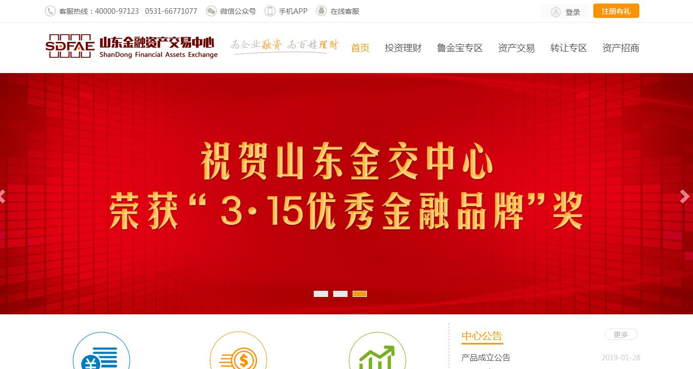 | 网站简介: 山东金融资产交易中心有限公司(简称“山东金交中心”)是经山东省人民政府批准设立(鲁政字〔2014〕54号文件)的综合性金融资产交易平台,是贯彻落实山东“金改22条”、推进全省金融改革、完善区域金融要素市场体系的核心战略单位,拥有国家财政部门指定的金融企业资产交易资质,是具有政府公信力的规范化、市场化、现代化的金融创新企业。自成立以来,山东金交中心秉承“为企业融资、为百姓理财”、“支持实体经济、服务地方金融”的理念,打造“两个平台,一个市场”的平台,创新研发一系列金融产品,为完善济南金融要素市场、推动金融改革发展做出重要贡献。2015年10月,山东金交中心顺利完成增资扩股工作,注册资本金由5000万元增加到2亿元,济南市政府、瀚华金控股份有限公司和青岛市政府分别作为第一、第二和第三大股东,这标志着山东金交中心作为链接济南区域金融中心和青岛财富管理中心的全省性综合金融资产交易平台,迈入新的发展阶段,驶入发展的快车道。 |