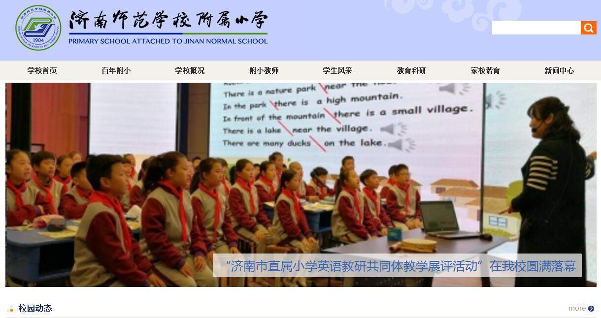 享誉中外的泉城济南,明泉荟萃,名士辈出。济南师范学校附属小学作为众多教育明泉之一,在走过的百年岁月中流淌着温润的涓涓细流。我校创建于1904年,此为山东省立小学创办之始。现为济南市教育局直属小学,现有教职工113人,在校学生1937人,现任校长陈京开。 建校初期,民国四大教育家王祝晨校长力主革新,推行“聘用女教师、招男女生同校、推行白话文教学”的改革,教育教学质量突出影响广泛,成绩优秀,名噪一时,时有“南京高师(现南京师范大学)附小第二”美誉。学校曾邀请印度诗人泰戈尔,美国教育家杜威以及国内知名人士胡适、冰心、周作人、杨杏佛等来校讲学,一时成为山东省教学研究的中心。一批批优秀学生从附小走向社会。老校友东方鸿儒、国学大师季羡林,北师大教授、著名诗人、文学评论家李长之,美籍华裔国际著名数学家王浩等皆是我校杰出的校友代表。新时代,学校秉承“尊重为本、享受教育”的教育理念,通过“先锋论坛”促进教师专业发展,先后邀请顾明远、魏书生、于永正、窦桂梅、崔允漷、李镇西等知名教育教学课程专家到校授课、讲座,极大地开拓了教师的视野,促进了教师和学校的发展。教师提升发展空间充足。我校已有4人获山东省特级教师称号,4人获山东省级教学能手称号,另有20余名教师分获市、区级教学能手或百佳教师称号,数十人次获全国级、省级课堂教学评比一等奖,多项学校及教师科研课题结题、立项。怀揣新时代的教育梦想,我们将继续砥砺拼搏,共同续写济南师范学校附属小学的第二个百年华章。
