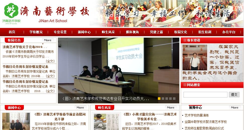 济南艺术学校是经山东省人民政府批准成立的济南市公办全日制普通中等专业艺校,其前身为济南正谊中学,创建于1913年,是一所具有悠久办学历史的齐鲁名校,从这里走出了季羡林、王幼平、孙思白等著名人士;鞠思敏、于丹绂、黄炎培、陶行知等著名教育家都曾在这里任教。多年来,学校继承发扬老前辈的严谨教风,为社会培养了大量优秀的艺术人才。学校以创建特色学校为总抓手,以“品牌引领、特色创新、联动并举、上挂下延”为主要思路,以“巩固中专、扩大高中、试办初中、调整专业设置、打通升学渠道”为主要策略,坚持学历教育与短期培训并举、教育事业与艺术产业并行的发展方向,致力于把学校打造成为济南市艺术教育“展演中心、培训中心、指导中心”。学校现有教职工196人,中高级职称近百人。专业老师63名,其中省市优秀教师10名,教学能手20名,青年优秀教师15名,学科带头人及学科中心组成员20名,聘请各专业名师22名,学校还聘请全国各专业颇有影响的专家学者为客座教授,组成了坚强的教师队伍。设杂技、曲艺、音乐、美术、舞蹈、影视表演、体育舞蹈等专业,学校的教育教学质量在升学、就业两方面得到充分的验证,毕业学生在清华大学、中央美院、中国美院、中国音乐学院、中央戏剧学院、中国戏曲学院、中央民族大学、上海戏剧学院、解放军艺术学院、北京舞蹈学院等国内知名院校继续深造,还有的在中国歌舞剧院、济南军区前卫歌舞团、兰州军区歌舞团、日本四季舞蹈团、省市级歌舞剧院、京剧院、杂技团、曲艺团等专业团体和省市电视台、广播电台及各大航空公司等单位就业。现在校友中有著名演员、教授、企业家、各级领导干部及在平凡岗位上做出优异成绩的先进模范。学校位于舜耕路68号,总占地面积104亩,设有教学楼、实验楼、正谊剧场、大型舞蹈训练房、微机室、语音室、多媒体教室、画室、钢琴房、电钢琴室、声乐教室等。近年来,学校又添置了百万元的教学设备,学校图书馆的特藏书库保存了大量的珍贵书籍。在全校广大教职工的共同努力下,我校还获得了“山东省艺术教育示范校”、“山东省文化发展先进单位”、“济南市高中教学示范学校”、“济南市精神文明先进单位”、“济南市卫生先进单位”、“济南市德育规范化学校”、“济南市军民共建文明单位”、“济南市艺术教育示范学校”、“济南市电化教育示范学校”、“山东报业集团十佳小记者站”等荣誉称号。学校全面实施素质教育,坚持教育教学改革,优化课堂教学,不断加强竞争激励机制,实行规范化管理,形成了良好的校风、教风和学风。教师队伍素质优良,结构合理,广大教职工爱岗敬业,全面关心学生成长,涌现出一批优秀共产党员,省、市教学能手,优秀班主任,百佳教师,师德教风先进个人。多名教师科研成果获国家级、省级、市级论文一等奖。为创办适应新时期需要的特色艺术学校,学校将不断深化改革,本着“务实、开拓、求发展”的精神,广纳英才,积极拓宽办学渠道,走出省门、国门,将济南艺术学校办成济南市乃至山东省艺术教育窗口学校。