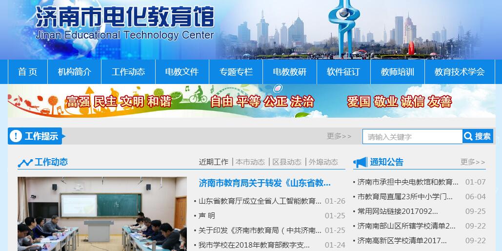 济南市电化教育馆是济南市教育局所属处级公益一类事业单位,经费来源为财政拨款,成立于1984年。其主要职责:1、协助教育行政部门制订全市教育信息化发展规划,并具体组织实施。完成上级有关教育信息化建设任务。2015年1月,济南市教育局成立教育信息化工作领导小组。领导小组下设办公室,办公室设在市电化教育馆,具体负责教育信息化推进工作。2、建立和健全我市教育信息网络管理的规章制度,研究制订全市有关电化教育工作的政策、意见并组织实施。指导和评估各县(市)区和学校教育信息化环境建设工作。3、研究现代教育技术理论,指导全市现代教育技术应用与研究,组织并指导各县(市)区和各级各类学校开展教育技术、信息技术教育理论与应用的课题研究与实验,开展研究成果的交流与推广工作。负责对各级电化教育示范学校的管理与指导。4负责全市中小学网络信息安全与管理等工作,济南教育信息网站的建设和运行、维护工作。做好教育信息资源的开发、应用与服务工作。5、负责全市电教教材、音像资料和信息资源的征集、引进、发行及教育教学资源库的建设与运用。6、组织全市中小学师生参加全国、省、市的各类相关竞赛活动及青少年科技活动,并做好相关论文、教育软件、优秀课例、学生作品等教研成果的评审及向上级主管部门推荐的工作。7、负责对全市中小学信息技术教育人员、教育技术人员和网络管理人员进行业务培训和业务指导。8、承担济南教育技术学会秘书处工作。由中央电化教育馆、教育部基础资源中心主办的纪念邓小平同志倡导发展电化教育30年暨全国电教系统表彰大会,2008年12月6日在北京举行。中央电教馆成立30周年庆祝活动同时举办。教育部副部长陈小娅出席并讲话。表彰大会上,济南市电化教育馆和其他136个单位获得“全国电化教育先进单位”称号。多次被省教育厅、省电教馆评为山东省电化教育先进单位。2011年1月18日,济南市信息化领导小组对历下区人民政府等49家先进集体、刘立东等79名先进个人进行了通报表彰。济南市电化教育馆被评为济南市信息化工作先进集体。