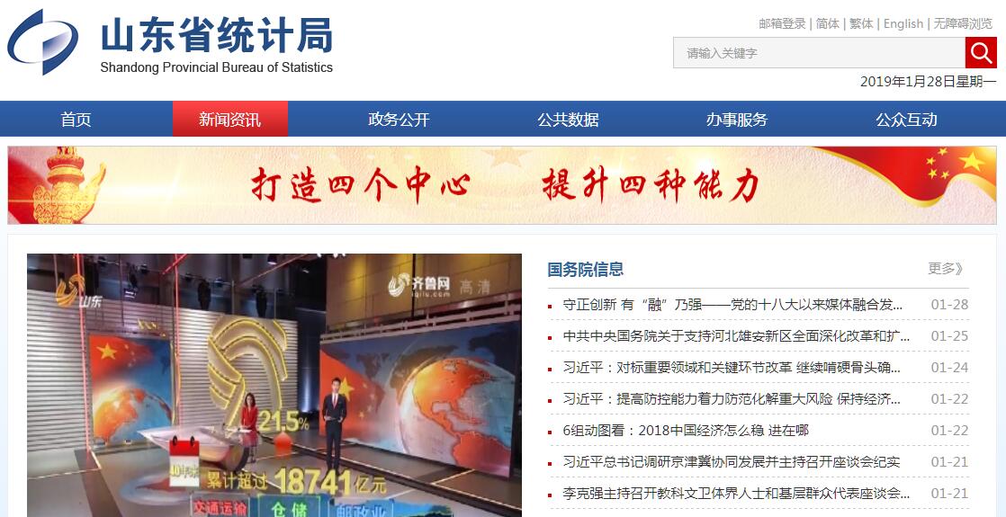 山东省统计局为省政府直属机构,主要职责为:(一)承担组织领导和协调全省统计工作,确保统计数据真实、准确、完整、及时的责任;贯彻执行统计工作法律、法规和方针、政策,起草有关地方性法规、规章草案;拟订全省统计工作规划、政策、统计制度和统计标准并组织实施;依法监督涉外调查活动;依法实施统计执法检查并查处统计违法行为。(二)建立健全全省国民经济核算体系和统计指标体系;依法审批地方统计调查项目,审核统计计划、调查方案;建立健全统计数据质量审核、监控和评估制度,开展对重要统计数据的审核、监控和评估;指导部门统计工作。(三)根据国家重大国情国力普查计划、方案,拟订全省的实施方案,会同有关部门组织实施人口、经济、农业等重大国情国力普查;统一组织协调各地、各部门的社会经济调查,汇总整理全省的基本统计资料;对全省国民经济、社会发展、科技进步和资源环境等情况进行统计分析、统计预测和统计监督,向省委、省政府及有关部门提供统计信息和咨询建议。(四)统一核定、管理、公布全省性的基本统计资料,定期发布全省国民经济和社会发展情况的统计信息。(五)建立并管理全省统计信息自动化系统和统计数据库系统,指导各地统计信息化系统建设。(六)协助各地管理设区的市统计局局长、副局长;指导全省统计基层基础建设和统计队伍建设;监督管理各地统计部门由中央、省级财政提供的统计经费。(七)指导全省统计科学研究、干部培训等工作。(八)承办省委、省政府交办的其他事项。