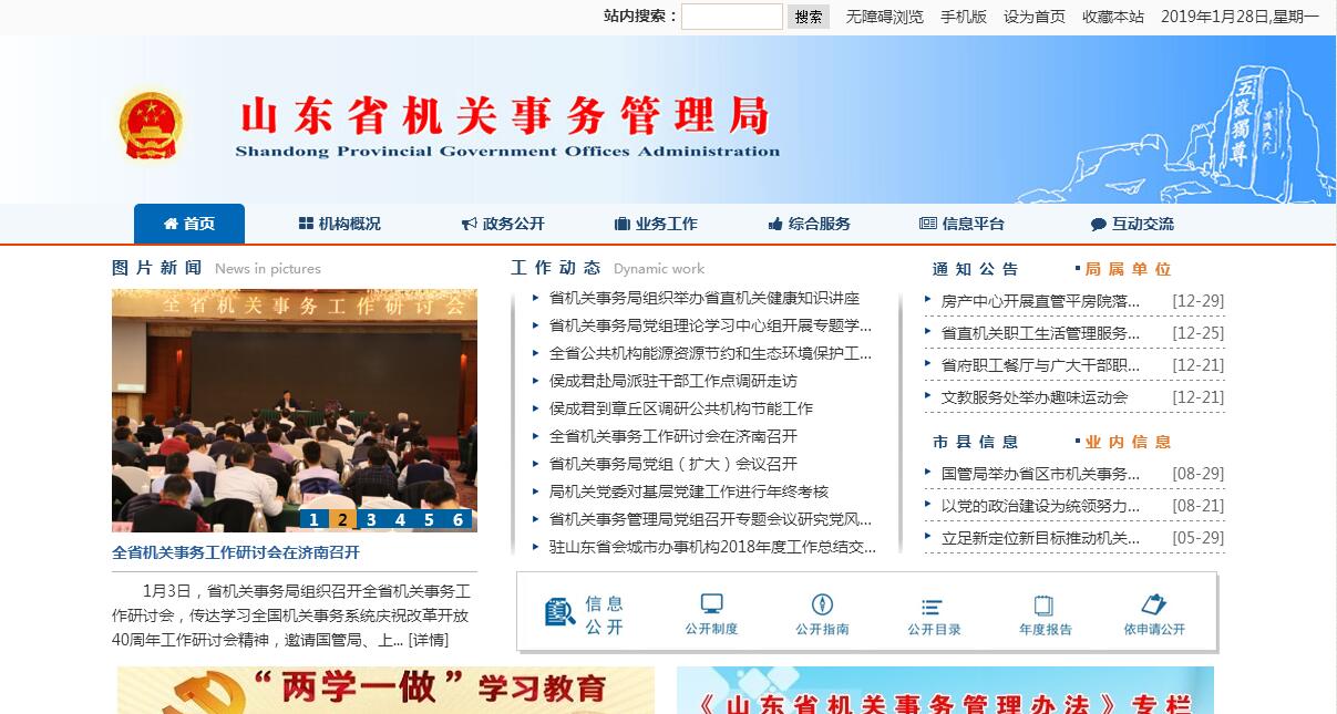 山东省机关事务管理局是省政府直属机构,负责省级机关事务的管理、保障、服务工作,拟订机关事务工作和后勤体制改革的政策并组织实施,指导全省机关事务工作。其主要职责:(一)负责省级机关事务的管理、保障、服务工作。拟订机关事务工作和后勤体制改革的政策并组织实施;指导全省机关事务工作。(二)按规定承担省级行政事业单位国有资产管理有关工作。(三) 负责省级机关房地产管理工作。拟订相关制度和具体管理办法并组织实施;按规定负责办公用房的建设项目审核、计划编制,会同有关部门推进省级机关办公用房的 统一建设、购置和集中管理使用;负责办公用房及附属用房的权属登记、使用调配、租金管理、维修管理等工作;负责省级机关国有土地使用权的管理工作。(四)拟订省级机关住房制度改革方案并组织实施;指导省级机关公务员集中住宅区的建设、配售和管理工作;管理省级机关周转房。(五)拟订省级机关公务用车管理规定并组织实施;负责省级机关公务用车的编制、配备、更新及报废工作。(六)在省人民政府管理节能工作的部门指导下,负责推进、指导、协调、监督全省公共机构节能工作。会同有关部门拟订全省公共机构节能中长期规划和省级公共机构节能政策、制度,并组织实施;会同有关部门组织开展能耗监测、统计、公布工作。(七)负责省级机关人民防空工作。(八)负责制定完善省级党政机关国内公务接待管理制度和有关标准,指导、协调全省党政机关国内公务接待工作,负责驻省会城市办事机构日常管理工作,参与省级重要会议、重大活动、重大接待任务的总务保障工作。(九)指导、协调省级机关社会治安综合治理、绿化美化、爱国卫生等社会事务工作。(十)承办省委、省政府交办的其他事项。