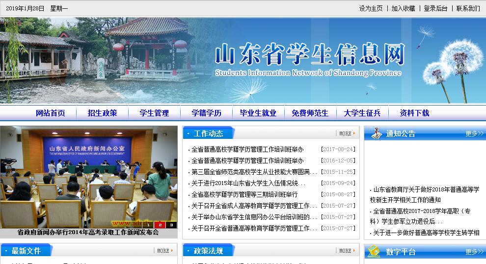 | 网站简介: 山东省学生信息网由山东省教育厅学生处主办。其主要职责:1.牵头研究、拟订全省高等教育招生考试相关政策和改革措施,拟订全省高等学校和科研单位国民教育系列招生工作的意见及有关规定。2.统筹全省学生信息管理工作。负责普通高等教育、成人高等教育和研究生学籍、学历管理工作。负责普通高等学校、成人高等学校学生转学审批工作。3.负责高等学校招生章程核准和招生广告管理工作。4.负责普通高等教育学生专科升本科工作。5.负责高等学校毕业生就业、创业指导和相关数据统计、分析工作,指导普通高等学校开展学生入学和毕业教育,组织实施国家急需毕业生的专项就业计划。6.指导全省高等学校学生管理和奖惩工作,组织高等学校省级优秀学生、优秀学生干部和先进学生集体的评选表彰活动。7.参与拟订全省高等学校招生计划。8.协助有关部门开展大学生征兵工作。9.负责受理高等学校学生申诉。10.参与教育信息化有关工作。11.完成领导交办的其他事项。 |