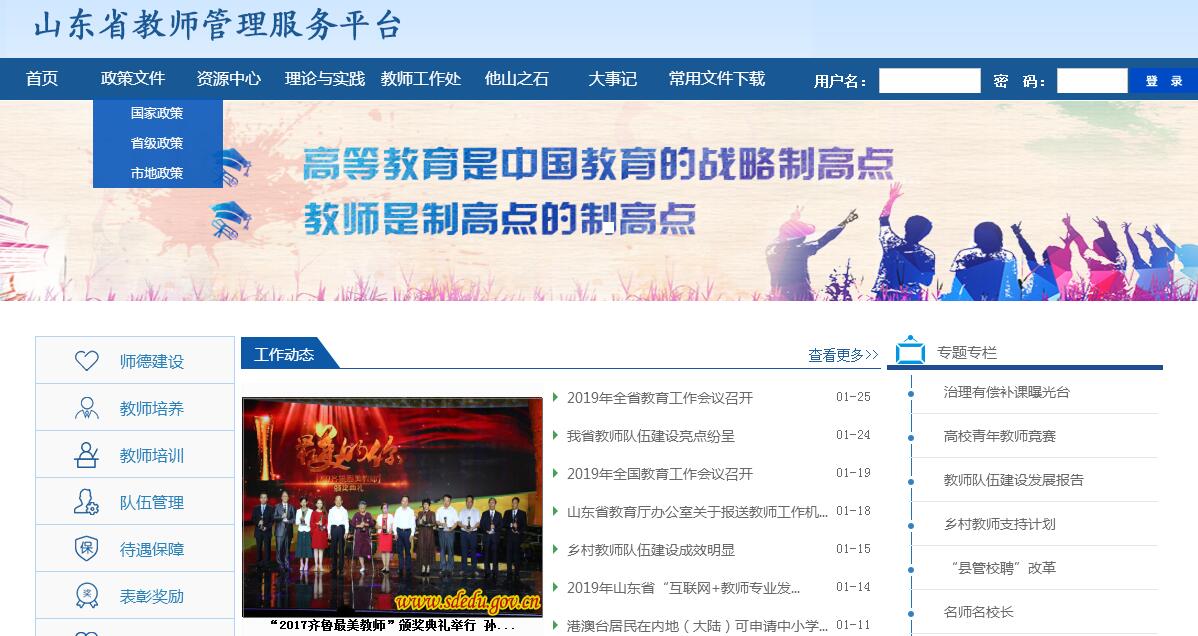 山东省教师管理服务平台由山东省教育厅教师工作处主办。