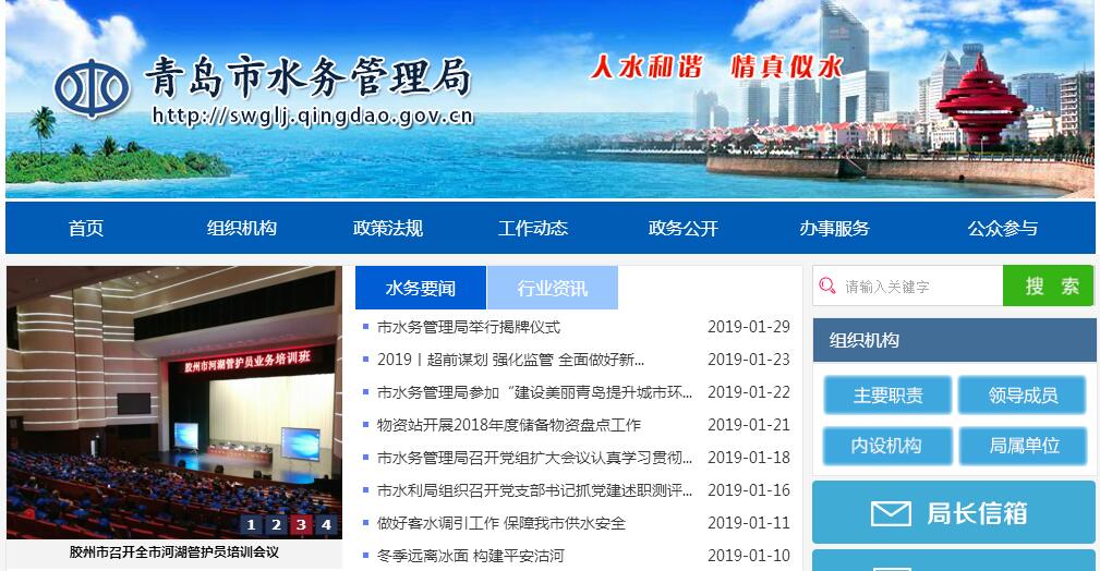 青岛市水务管理局主要职责:一、负责保障水资源的合理开发利用。起草有关地方性法规、规章草案;拟订全市水利发展中长期规划和政策,组织编制水利综合规划和专业规划并监督实施;负责提出水利固定资产投资规模和方向及财政性资金、水利建设投资安排建议并组织实施;负责市级水利资金和水利国有资产监督管理工作;提出有关水利价格、收费、信贷的政策建议。二、负责生活、生产经营和生态环境用水的统筹兼顾和保障。 实施水资源的统一监督管理;拟订全市水中长期供求规划、水量分配方案并监督实施;负责重要流域、区域以及重点调水工程的水资源调度;组织实施取水许可、水资源有偿使用、水资源论证等制度;指导雨洪资源开发利用、水利行业供水和农村水能资源开发等工作。三、承担水资源保护和节约用水的责任。组织编制全市水资源保护规划;组织拟订重要河流、水库的水功能区划并监督实施; 参与核定水域纳污能力,提出限制排污总量意见;指导入河排污口设置工作;指导饮用水水源、地下水开发利用和保护工作;统一监督管理全市节约用水工作,拟订节约用水政策和规划、计划并监督实施,指导和推动节水型社会建设。四、组织、协调、监督、指挥全市防汛抗旱工作。负责对土地利用总体规划、城市规划和其他涉及防洪的规划、重大建设项目布局的防洪论证提出意见;负责对大中型边界河道、大中型水库和重要水利工程实施防汛抗旱调度;负责重要蓄滞洪区和防洪保护区的洪水影响评价工作;拟定防汛抗旱应急预案;指导水利突发公共事件的应急管理工作;承担市政府防汛抗旱指挥部的日常工作。五、指导水利工程建设与管理工作。指导水利设施、水域及其岸线的管理与保护;指导河流、水库、河口滩涂、海堤的治理和开发;组织实施具有控制性的或跨区市的重要水利工程建设与运行管理;组织实施水利工程建设有关制度;监督管理水利建设市场;按规定权限审查河道管理范围内建设项目、工程建设方案;负责河道采砂管理的有关工作;监督管理水利移民工作。六、指导农村水利工作。组织协调农田水利基本建设;指导农田灌溉排水、村镇供水工作;组织农村饮水安全、节水灌溉等工程的建设与管理;指导农村水利社会化服务体系建设。七、负责水土保持工作。组织编制水土保持和水生态建设规划并监督实施;组织实施水土流失的综合防治、监测预报并定期公告;负责重点开发建设项目水土保持方案的审批、监督实施和水土保持设施的验收工作;参与管理“四荒”(荒山、荒丘、荒滩、 荒沟)的治理开发工作。八、指导水政监察和水行政执法工作。负责查处较大涉水违法事件;协调处理区市间的水事纠纷,受市政府委托协调处理市际间水事纠纷;依法征收水利规费。九、负责重点水利工程安全生产监督管理工作;指导水利行业安全生产工作;监督管理水利建设市场;组织实施水利工程质量和安全监督。十、组织开展水利科学研究、技术推广工作;负责行业技术标准和规程规范的监督实施;指导水利系统对外交流、利用外资、引进国(境)外智力等工作;指导水利宣传、信息化、人才队伍和精神文明建设等工作。十一、负责水资源监测管理;对地表水和地下水水量、水质实施监测;发布雨情、水情等水资源信息、情报预报和水资源公报;指导全市水文工作。十二、承办市委、市政府交办的其他事项。