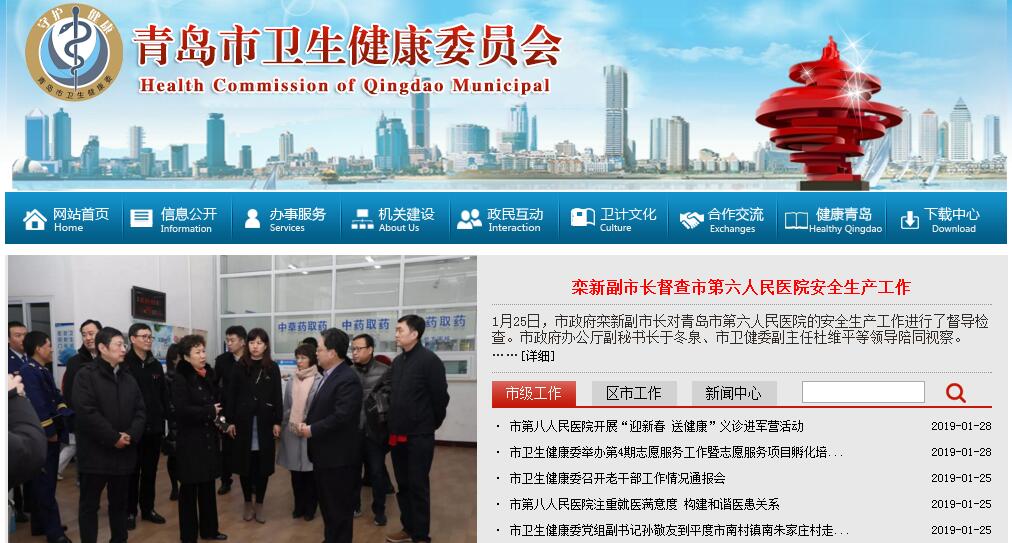 青岛市卫生健康委员会主要职责:(一)贯彻执行国家、省、市关于卫生和计划生育、中医药事业发展的法律、法规和方针政策 起草相关地方性法规、规章草案,拟订相关规划、政策,依法制定地方标准和技术规范 推进卫生和计划生育系统体制改革,统筹规划卫生和计划生育服务资源配置。(二)负责制定全市疾病预防控制规划、免疫规划、严重危害人民健康的公共卫生问题的干预措施并组织实施,协调有关部门对重大疾病实施综合防控与干预。(三)组织和指导全市突发公共卫生事件预防控制和各类突发事件的医疗卫生救援,及时报告传染病疫情信息、突发公共卫生事件应急处置信息。(四)负责制定职责范围内的职业卫生、放射卫生、环境卫生、学校卫生、公共场所卫生、饮用水卫生管理规范、标准和政策措施,组织开展相关监测、调查、评估和监督,负责传染病防治监督。组织开展食品安全风险监测、评估,依法制定食品安全地方标准。(五)负责组织拟订并实施全市基层卫生和计划生育服务、妇幼卫生发展规划和政策措施,指导基层卫生和计划生育、妇幼卫生服务体系建设,推进基本公共卫生和计划生育服务均等化,完善基层运行新机制和乡村医生管理制度。(六)负责制定全市医疗机构和医疗服务全行业管理办法并监督实施。制定医疗机构及其医疗服务、医疗技术、医疗质量、医疗安全以及采供血机构管理的规范、地方标准并组织实施。会同有关部门贯彻执行国家卫生专业技术人员准入、资格标准。(七)负责组织推进全市公立医院改革,建立公益性为导向的绩效考核和评价运行机制,建设和谐医患关系,提出医疗服务和药品价格政策的建议。(八)贯彻执行国家药物政策和国家基本药物制度,组织实施国家基本药物目录。(九)贯彻落实国家、省生育政策,组织实施促进出生人口 性别平衡的政策措施,组织监测计划生育发展动态,提出发布计划生育安全预警预报信息建议。建立计划生育技术服务管理制度并监督实施。依法规范计划生育药具管理工作。制定优生优育和提高出生人口素质的政策措施并组织实施,推动实施计划生育生殖健康促进计划,降低出生缺陷人口数量。(十)组织建立计划生育利益导向、计划生育特殊困难家庭扶助和促进计划生育家庭发展等机制,负责协调推进有关部门、群众团体履行计划生育工作相关职责。(十一)制定流动人口计划生育服务管理制度并组织实施,推动建立流动人口卫生和计划生育信息共享和公共服务工作机制。(十二)组织拟订全市卫生和计划生育人才、科技发展规划,指导卫生和计划生育人才队伍建设。加强全科医生等急需紧缺专业人才培养,组织实施卫生和计划生育相关科研攻关项目,指导成果普及应用。(十三)指导全市卫生和计划生育工作,完善综合监督执法体系,规范执法行为,监督检查法律法规和政策措施的落实,组织查处重大违法行为。监督落实计划生育目标管理责任制和计划生育一票否决制。(十四)负责卫生和计划生育宣传、健康教育、健康促进和信息化建设等工作,依法组织实施统计调查。组织开展对外援助和交流合作。(十五)负责拟订全市中医药中长期发展规划和政策并组织实施,继承和发展中医药文化,促进中药资源的保护、研究开发和合理利用。(十六)拟订全市保健工作规划、政策并组织实施,负责市保健委员会确定的保健对象的医疗保健工作,承担市保健委员会的具体工作。(十七)承担市爱国卫生运动委员会、市政府卫生防病暨防治艾滋病工作委员会、市人口与计划生育工作领导小组的日常工作。(十八)承办市委、市政府交办的其他事项。