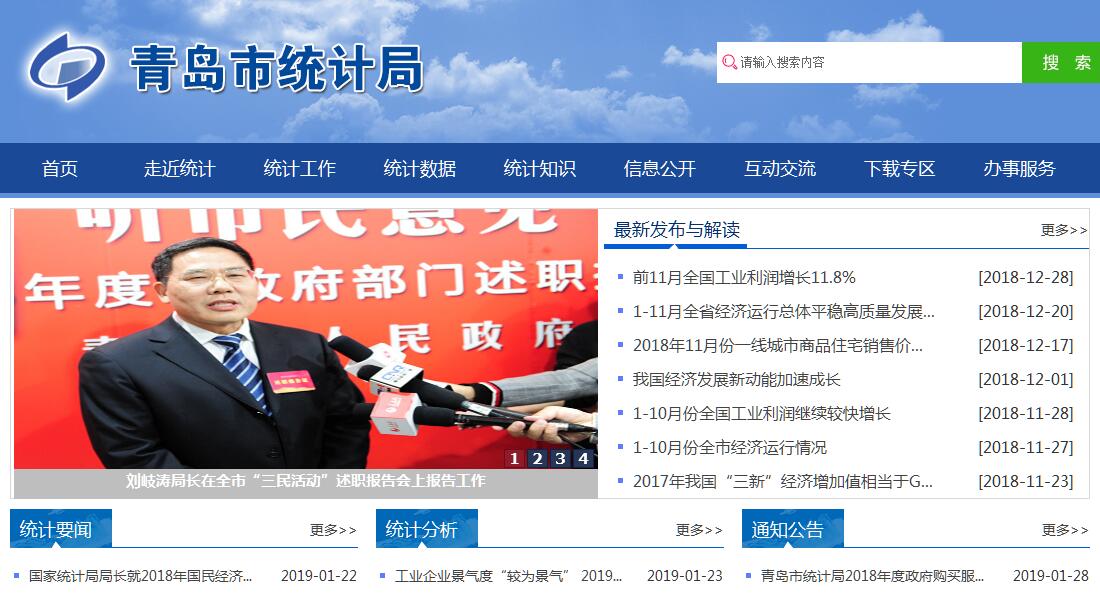 青岛市统计局主要职责:一、组织领导和协调全市统计工作,确保统计数据真实、准确、及时。宣传、贯彻执行国家统计法律法规,并对执行情况进行监督检查。拟订全市统计工作地方性法规、规章草案和规划以及统计调查计划、方案并组织实施。负责统计执法检查工作,受理统计违法举报,依法查处虚报、瞒报、拒报、迟报等统计违法行为。二、组织实施国民经济核算制度,承担全市国内生产总值、投入产出、资金流量、资产负债、资源环境核算等工作。编制国民经济循环帐户,审核各区市国民经济核算数据。提供国民经济核算资料及有关综合平衡状况的分析研究报告。拟订全市统计制度改革规划和方案 组织拟订全市基本统计报表制度和统计指标体系。依法审批和备案部门统计调查项目。建立健全统计数据质量审核、监控和评估制度,开展对重要数据的审核、监控和评估。指导部门统计工作。三、根据国家、省重大国情、国力普查计划、方案,拟订全市实施方案。会同有关部门组织实施人口、经济、农业等重大国情国力普查。统一组织协调各区市、各部门的社会经济调查。四、按照国家、省统计制度方法的要求,组织指导全市规模以上工业、贸易业、建筑业、服务业等企业的网上直报工作。组织全市统计调查单位的名录库建设。五、汇总和整理全市基本统计资料。对全市国民经济、科技进步和社会发展等情况进行统计分析、统计研究、统计预测和统计监督,向市委、市政府及有关部门提供统计信息和咨询建议。六、统一核定、管理、公布全市性的基本统计资料,定期向社会公众发布全市国民经济和社会发展情况的统计信息。负责全社会统计资料的整理、立档等管理工作。七、建立并管理全市统计信息自动化系统和统计数据库系统,指导各区市统计信息化系统建设。八、协助各区市党委政府管理统计局局长和副局长。指导全市统计基层基础建设和统计队伍建设。监督管理全市及各区市政府统计部门使用中央财政拨付资金的使用。组织全市统计专业技术资格考试、统计从业资格认定工作。九、指导全市统计科学研究、统计教育、统计干部培训工作。十、承接社情民意调查任务,承担社情民意调查的组织实施、汇总、分析等专业技术工作。十一、承办市委、市政府和上级业务部门交办的其他事项。