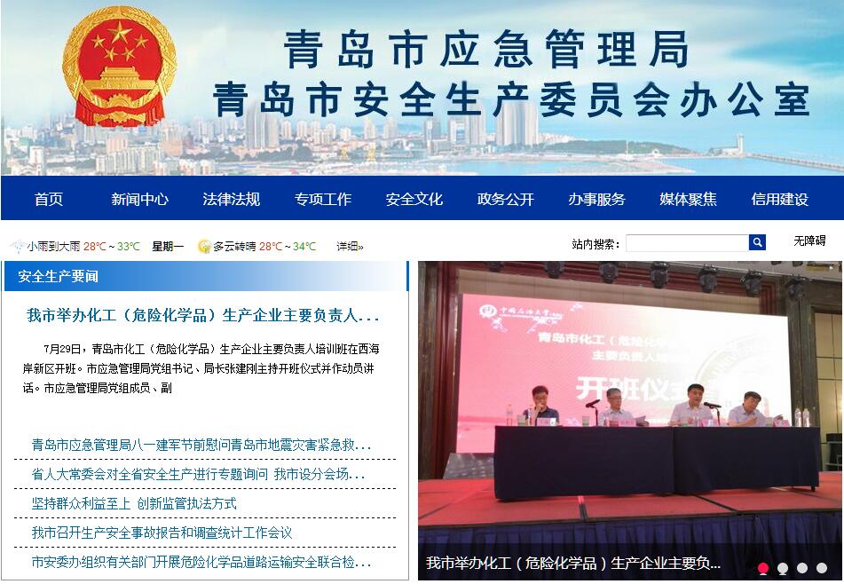 青岛市应急管理局主要职责:(一)负责应急管理工作,负责并组织指导协调应对安全生产类、自然灾害类等突发事件和综合防灾减灾救灾工作。负责安全生产综合监督管理和工矿商贸行业(煤矿除外,下同)安全生产监督管理工作。 (二)贯彻执行应急管理、安全生产、防灾减灾救灾有关法律法规和方针政策。组织编制全市安全生产和综合防灾减灾、应急体系建设规划,起草相关地方性法规、政府规章草案以及有关地方标准和规程,组织并监督实施。指导、监督区(市)和功能区等应急管理和安全生产行政执法工作。 (三)负责应急预案体系建设,建立完善事故灾难和自然灾害分级应对制度。组织编制全市总体应急预案和安全生产类、自然灾害类专项预案,综合协调应急预案衔接工作, 组织开展预案演练,组织推动应急避难设施建设。 (四)牵头建立全市统一的应急管理信息系统,负责信息传输渠道的规划、布局和建设。建立监测预警和灾情报告制度,健全自然灾害信息资源获取和共享机制,依法统一发布灾情。 (五)负责组织安全生产类、自然灾害类突发事件的信息汇总上报,组织安全生产类、自然灾害类等突发事件应急救援。综合研判突发事件发展态势并提出应对建议,协助市委、市政府指定的负责同志组织重大灾害应急处置工作。 (六)统一协调指挥全市应急救援队伍,建立应急协调联动机制。推进指挥平台对接,衔接解放军和武警部队参与应急救援工作。 (七)负责统筹推进应急救援力量建设,负责市级专业应急救援力量建设和管理,指导区(市)和功能区等专业应急救援力量以及社会应急救援力量建设。 (八)负责消防工作,指导区(市)和功能区等消防监督、火灾预防、火灾扑救等工作。 (九)指导协调森林和草原(地)火灾、水旱灾害、地震和地质灾害、海洋灾害等防治工作,负责自然灾害综合监测预警工作,组织开展自然灾害综合风险评估工作。 (十)负责组织并协调灾害救助工作,组织灾情核查、损失评估、救灾捐赠工作,下达指令调拨救灾储备物资,管理、分配各类救灾款物并监督使用。组织开展自然灾害类突发事件的调查评估工作。 (十一)依法行使安全生产综合监督管理职权,指导协调、监督检查市有关部门、区(市)政府和功能区管理机构等安全生产工作,组织开展安全生产巡查、考核工作。依法组织生产安全事故调查处理,监督检查事故防范和整改措施的落实情况,参与监督检查事故责任追究落实情况。负责应急管理、安全生产、防灾减灾的统计分析工作,通报有关情况。 (十二)按照分级、属地原则,依法监督检查工矿商贸生产经营单位贯彻执行安全生产法律法规情况及其安全生产条件和有关设备(特种设备除外)、材料、劳动防护用品的安全生产管理工作。监督检查重大危险源监控和重大事故隐患排查治理工作,依法查处不具备安全生产条件的工矿商贸生产经营单位。负责监督管理市管工矿商贸企业安全生产工作,指导监督中央、省驻青工矿商贸企业安全生产工作。 (十三)负责非煤矿山企业和危险化学品、烟花爆竹生产企业安全生产准入管理工作,依法组织并指导监督实施安全生产准入制度。负责危险化学品安全监督管理综合工作和烟花爆竹安全生产监督管理工作。 (十四)负责监督检查职责范围内新建、改建、扩建工程项目的安全设施与主体工程同时设计、同时施工、同时投产使用情况。 (十五)负责指导协调安全生产检测检验工作,监督安全生产社会中介机构和安全评价工作,实施注册安全工程师职业资格制度有关工作。负责推动政府向社会力量购买服务。培育、引导、扶持应急管理和安全生产行业协会发展, 推进行业协会自律,发挥服务国家、服务社会、服务群众、服务行业的作用。 (十六)会同有关部门拟订应急物资储备和应急救援装备规划,建立健全应急物资信息平台和调拨制度,在救灾时统一调度,保障救灾工作。 (十七)负责应急管理、安全生产宣传教育、培训和对外交流合作。组织指导应急管理、安全生产的科学技术研究、推广应用和信息化建设工作。承担本领域招商引资和招才引智相关工作,配合有关部门承担优化营商环境相关工作。 (十八)承担防汛抗旱、抗震救灾、森林防火等相关指挥部日常工作,承担市安全生产委员会、市突发事件应急管理委员会日常工作。 (十九)完成市委、市政府交办的其他任务。