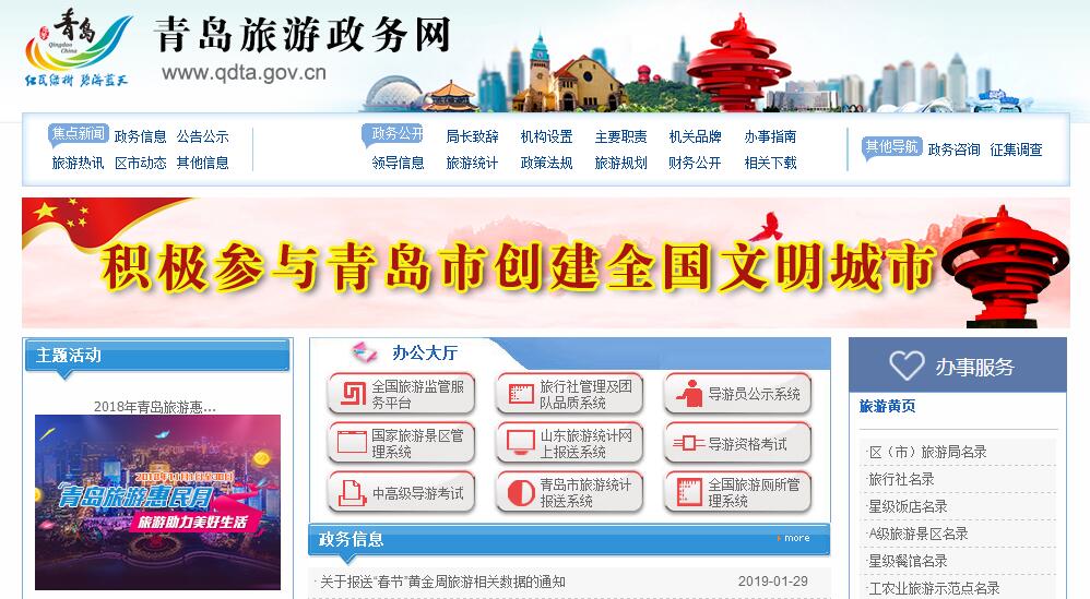 青岛市旅游发展委员会主要职责:(一)贯彻执行旅游法律法规规章与方针政策,起草旅游地方性法规、规章草案,组织实施旅游地方性法规、规章,对旅游法律、法规、政策执行情况进行监督检查。(二)拟订旅游产业发展战略规划,并组织实施 拟订海洋游、休闲度假游等专项旅游规划并组织实施 推进旅游规划与“多规合一”的有效衔接。(三)组织旅游资源普查,统筹协调旅游资源的保护、开发与利用 指导重点旅游区域、旅游目的地、旅游线路的规划开发 监测旅游经济运行,负责行业信息统计和发布。(四)统筹引导、培育规范旅游业发展,推进与相关产业融合 拟订旅游产业促进政策,协调重大旅游项目开发建设 协调指导乡村旅游、红色旅游、生态旅游、假日旅游等相关工作 参与重大旅游节会活动。(五)负责旅游行业管理、旅游行业标准化工作,组织实施旅游企业等级评定,指导协调旅游住宿业行业管理 指导行业精神文明和诚信体系建设。(六)负责旅游市场、旅游住宿业及旅游新兴业态监管 规范旅游企业和从业人员的经营和服务行为 规范旅游市场秩序,监督管理旅游服务质量 承担跨区域重大执法活动的协调调度、执法监督等职责,维护旅游消费者和旅游经营者合法权益。(七)强化旅游综合协调,协调推进部门合作,推动旅游基础设施建设管理,优化旅游公共服务 推进公共服务体系建设,构建集咨询服务、信息推送、大数据分析研判于一体的旅游公共服务体系 承担市旅游工作领导小组日常工作。(八)负责旅游行业安全应急工作,制定行业突发事件应急预案,组织协调应急处置和应急救援工作,负责对旅游行业安全生产进行监督管理。(九)负责旅游对外交流与合作,宣传推广城市旅游形象 研究制定并组织实施旅游人才规划。(十)承办市委、市政府交办的其他事项。