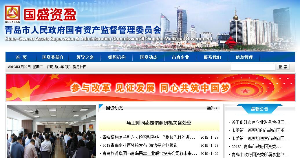 青岛市人民政府国有资产监督管理委员会主要职责:(一)根据市政府授权,依照《中华人民共和国公司法》、《中华人民共和国企业国有资产法》等法律法规履行出资人职责,监管市属企业国有(集体)资产,加强国有资产的管理工作。(二)承担监督所监管企业国有资产保值增值的责任;建立和完善国有资产保值增值指标体系,拟订考核标准;通过统计、稽核等方式对所监管企业国有资产的保值增值情况进行监管,依法维护国有资产出资人的权益。(三)指导推进国有企业改革和重组,推进国有企业的现代企业制度建设,完善公司治理结构,推动全市国有经济布局和结构的战略性调整。(四)按照职责分工,对所监管企业有关领导人员进行任免、对企业负责人进行经营业绩考核,并根据其经营业绩确定薪酬及奖惩,完善经营者激励和约束制度;负责所监管企业工资分配管理工作,制定所监管企业负责人收入分配政策并组织实施。(五)按照有关规定,代表市政府向所监管企业派出监事会、财务总监,负责监事会和财务总监的日常管理工作。(六)负责组织所监管企业上交国有资本收益;参与制定国有资本经营预算有关管理制度和办法;按照有关规定负责所监管企业国有资本经营预决算建议草案编制和执行等工作。