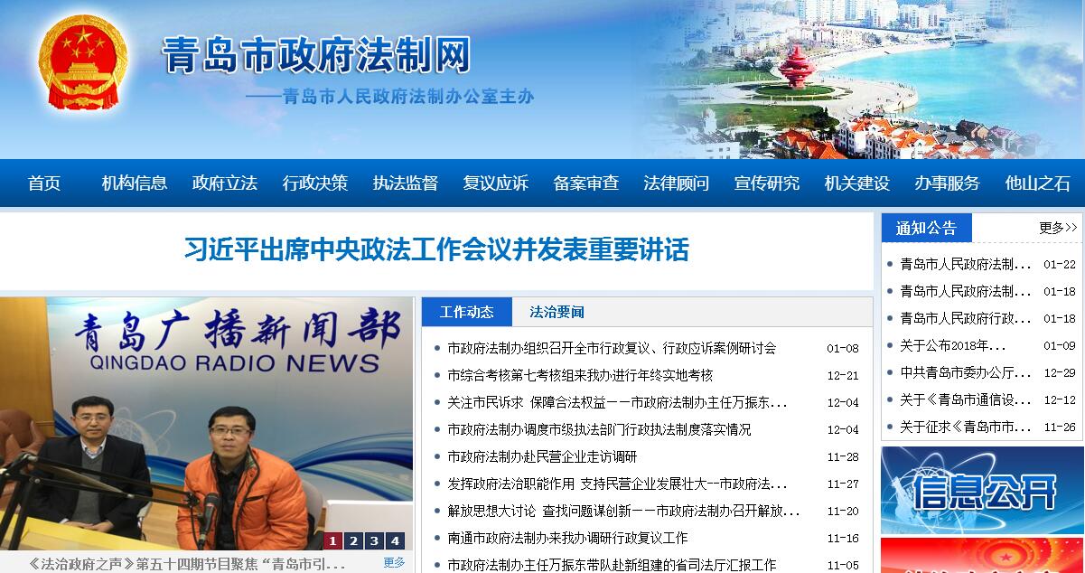 青岛市人民政府法制办公室主要职责:1.负责依法行政、法治政府建设的综合协调、组织实施、督促检查;开展调查研究,提出措施建议。2.统筹规划市政府立法工作,拟订市政府年度立法工作计划,报市政府批准后组织实施。3.负责审查报送市政府的地方性法规草案、市政府规章草案;起草或者组织起草地方性法规草案、市政府规章草案,负责法规规章草案向社会公开征求意见工作;负责法律、法规、规章草案征求意见的办理工作。4.负责市政府规章的立法解释工作;评估地方性法规、市政府规章实施情况;清理、修改、编纂市政府规章,对地方性法规提出清理或者修改意见;组织翻译、审定地方性法规、政府规章外文文本。5.负责市政府重大行政决策合法性审查工作;负责以市政府或市政府办公厅名义发布的规范性文件合法性审查工作;负责市政府部门及区(市)政府规范性文件备案审查工作。6.负责市政府行政执法监督的具体工作。7.研究行政诉讼、行政复议、行政赔偿、行政处罚、行政许可、行政收费、行政强制等法律法规实施及行政执法中带有普遍性的问题,向市政府提出完善制度和解决问题的建议;负责推行行政执法责任制。8.负责协调部门在法律、法规、规章实施中的争议,认定法律责任;负责推进相对集中行政处罚权、相对集中行政许可权工作,参与推进行政审批制度改革工作。9.负责市政府行政复议工作,统一受理、审理向市政府申请的行政复议案件;受市政府委托,负责行政应诉、行政赔偿、行政复议案件的办理等工作;承办由市政府作为赔偿义务机关的行政赔偿事务;承担市政府行政复议委员会的日常工作,督查落实市政府行政复议委员会重要决策事项;指导监督区(市)行政复议、行政赔偿、行政应诉等工作;参与市政府信访案件的复查、复核。10.负责市政府行政调解、行政裁决的综合协调和指导工作,会同有关部门完善行政调解、行政裁决、行政复议、民商事仲裁等工作机制。11.负责市政府法律顾问工作;组织法律顾问对市政府重大决策事项、签订重要合同协议等进行法律论证;参与市法律顾问团的选聘、考核及管理工作。12.组织开展依法行政、政府法制工作的理论研究和宣传培训工作;承担市政府领导集体学法具体工作;开展法制业务对外交流。13.承办市委、市政府交办的其他事项。