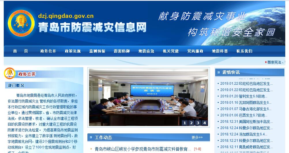 青岛市地震局是市政府直属事业单位,主管全市防震减灾工作。通过贯彻国家、省、市防震减灾法律法规,依法管理、核准、确认全市建设工程项目的抗震设防要求,对重大建设工程的抗震设防要求进行执法检查;同时对地震观测环境保护范围内新建、改建、扩建建设工程项目进行审批。为提高青岛市地震监测预报能力,全市建立了数字遥测地震台网、数字地震前兆台网,建设10个强震观测台和2个移动观测台;设立了100个宏观地震监测点,形成了一个较为周密、系统的地震监测网络。为提高青岛市地震应急能力,建成了青岛市地震应急指挥中心,组织制定了市级、区(市)级、乡镇街道级、城市社区级地震应急预案,以及相关50个行业及危险化学企业、学校、医院等专业应急预案,形成全市地震应急预案体系。建成了李沧区沧口公园为国家标准I类地震应急避难场所和6处功能完备的地震应急避难场所,各城区、社区也相应设立了避难场所。多年来,青岛市地震局秉承“防震为民”工作理念,坚持做好“防震减灾”三大体系建设,各方面取得了较好的成绩,连续三年荣获中国地震局授予的防震减灾工作综合评比一等奖,连续六年被省地震局评为防震减灾工作综合评比第一名,2007年被中国地震局、科技部等五部门评为地震科技工作先进单位,青岛市数字遥测地震台网、地震应急指挥技术系统和青岛市活断层探测与地震危险性评价项目分别被评为省科技进步二等奖。2013年至2018年连续六年被评为全国、全省防震减灾工作综合考核先进单位。2015年12月28日被授予青岛市文明单位标兵称号。青岛市地震局内设办公室、科技监测处、震害防御处、应急救援处等四个处室和机关党总支;下设事业单位为青岛市地震监测中心。