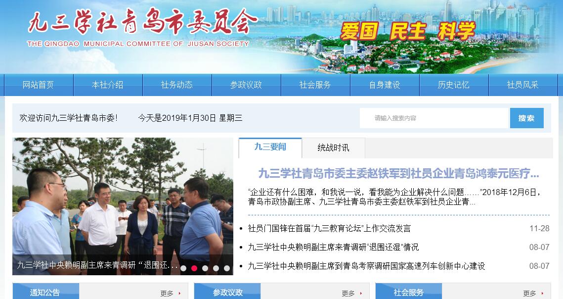 九三学社青岛地方组织成立于1953年6月,1955年11月20日召开了第一次社员大会。文革期间停止活动,1978年组织活动恢复,1984年3月由九三学社青岛分社改建为九三学社青岛市委员会,迄今已召开过十三次社员代表大会。历届主委为:陆侃如、张玺、许继曾、陆光庭、刘瑞玉、周广福、张培军、邵峰晶。现任主委赵铁军,副主委于鹏、阎军、张旭,秘书长任红梅。九三学社青岛市委现有18个基层组织,分为市南区、市北区、李沧区、崂山区、城阳区、黄岛区、莱西市、中国海洋大学、青岛大学、青岛理工大学、青岛农业大学、中科院海洋所、黄海水产所、青岛市立医院、青岛科技大学15个基层委员会,青岛职业技术学院、青岛远洋船员职业学院和机关3个直属支社。截至2016年12月,全市各基层共有社员1368名,其中超过70%具有副高级以上职称。在各级人大、政协担任职务的有81人。社市委另设参政议政、信息与宣传、科技、教育、卫生、文化、社会与法制、妇女、青年、老龄共10个专委会,1个社史与理论研究中心,1个书画院,分别负责各项专门工作。在新的历史时期,九三学社青岛市委遵循同中国共产党“长期共存、互相监督、肝胆相照、荣辱与共”的方针,以经济建设为中心,坚持四项基本原则,坚持改革开放,致力于发展和完善中国共产党领导的多党合作和政治协商制度,积极履行参政党职能,参加青岛市改革开放、经济建设等方面重大问题的协商,参与国家事务管理,就青岛教育、科技、经济建设等重大课题进行调研,为青岛市经济、政治、社会、民生发展,做出了积极的贡献。近年来,社市委逐步健全了参政议政管理工作机制,参政议政工作成果丰硕,为国家、省、市的经济社会发展做出了积极工作;社会服务工作持续进步,打造“六送”社会服务品牌,开展了送科技知识进企业、送健康知识进村镇、送创业知识进军营、送海洋知识进学校、送农业科技到田间、送法律知识到社区等一系列“送知识促发展”活动。先后成立了海洋科普教育基地、青少年科普教育基地、科技促农示范基地等12个同心基地,进一步提升了九三学社的良好社会形象。九三学社青岛市委历来重视社的自身建设,一方面通过举办新社员培训班、基层组织负责人培训班、建社纪念活动、重大节日纪念活动及各种座谈会、报告会、研讨会、组织参观考察等活动,不断提高社员的参政议政能力与水平;另一方面建立并健全了组织工作的各项规章制度,对基层工作进行科学管理;机关建设也取得了新进展,持续提高机关管理制度化水平,坚持以人为本,开展“四型”机关创建活动。通过不断加强组织建设,增强了社的凝聚力和创造力,为社组织发挥参政党作用奠定了坚实的组织基础。九三学社青岛市委荟萃了一大批科技、高等教育、医药卫生等界别的高中级知识分子,他们的成就和贡献,为世人所公认;他们的渊博知识,享誉海内外。九三学社青岛市地方组织的早期领导人陆侃如、其夫人冯沅君均是享誉海内外的知名学者。海洋生物学家张玺、海洋学家赫崇本、药理学家徐佐夏、著名眼科专家潘作新……都是青岛九三历史上的佼佼者。四名院士——毛汉礼(海洋水文物理学家,已故)、文圣常(物理海洋学家)、刘瑞玉(海洋生物学和甲壳动物学家,已故)、陈秉聪(农业工程学家,已故)是九三学社青岛市委科技工作者的杰出代表,是广大社员学习的楷模。