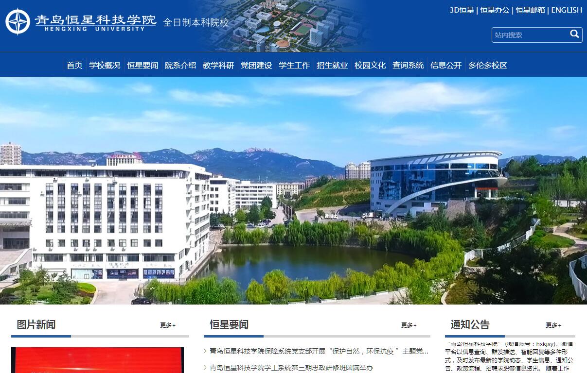青岛恒星科技学院创建于2000年,是一所经国家教育部批准的全日制普通本科高校。地处青岛市东部高校园区核心位置,东依海上第一名山崂山,西沿李村河公园,北邻青岛国际院士港和2014世界园艺博览会会址,周边与中国海洋大学、青岛大学、青岛科技大学毗邻,距石老人海水浴场10分钟车程,周边教育资源极为丰富,交通便利。学校以工学和管理学为主,涵盖工学、教育学、管理学、艺术学、理学、文学等六个学科门类,现有17个二级学院,21个本科专业,43个普通高职专科专业,全日制本专科在校生12564人。学校坚持 “以专业上产业,以产业促专业,把产业做大、把专业做强”的办学模式,建成机械、电气、信息、管理、土建、艺术5大类优势专业群;网络工程、印刷工程、机械工程,汽车服务工程成为省级本科优势特色专业;数字媒体艺术、印刷媒体技术、电气自动化技术等为省级高职特色专业;老年服务与管理为山东省财政扶持重点专业;汽车营销与服务、计算机网络技术、建筑室内设计为青岛市重点建设专业。学校办学实力雄厚、办学设施齐全。校园占地1108亩,校舍建筑面积近50万平方米,建有教学楼、图书馆、实训楼、国际交流中心、讲学厅和能容纳1.5万人的体育场,固定资产总值6.55亿元,其中教学仪器设备总值近亿元,配套电子电工、计算机、网络、汽车、印刷、护理、航空、机械、服装等18个实验实训中心,124个实验(训)室和校内实训基地,154家校外实习实训基地,为学生的职业技能培养提供了有利条件。图书馆书97万册,电子图书30万册,中外文期刊668种,7个大型书库,3个期刊阅览区,阅览座位1792个。校园网与国家教育科研网络相连接,可直接在网上进行电子信息文献检索和阅读。学校建有健全的游泳馆、篮球场、羽毛球场、乒乓球场、舞蹈房等设施和餐饮、购物等各类生活服务设施,学校校园环境优美,金园丁广场、名人苑广场、月亮湖、太阳湖等文化休闲场所,青春馨苑、书山学海、五行广场等人文景观,四季滴翠,环境清幽,为学生的成长、成才提供了充足条件和良好环境。按照“专家治学、名师执教”的师资队伍建设理念,学校不断加大人才引进力度,优化教师成长发展环境,适合学校应用型、技术技能型人才培养特色的双师型师资队伍逐渐形成。现有教职工922人,其中专任教师574人,具有硕士以上学位者281人、副高级以上专业技术职务资格者218人。另外,聘请兼职教师325人。学校聘请了多名省内外本科院校的知名专家、教授来校任教,同时荟聚行业精英、能工巧匠担任有关专业的实践课教师,参与编写特色教材,学校专兼职教师队伍敬业爱生、追求卓越、务实奉献,成为学校办学育人的中坚力量。学校坚持教学工作中心地位和科研工作重点地位,探索完善“行校对接、产教融合,工学交替、实岗实训”的人才培养模式;不断深化“人才共育五个一工程”,即开设一个专业,依托(举办)一个企业,对接一个行业,建设一批合作基地,参加(举办)一类技能竞赛,建立了行业、企业与学校共同培养人才的有效机制。近五年,学校全面加强专业、课程和教学团队建设,承担省部级以上教学研究项目9项,其中国家级项目1项,获山东省高等教育教学成果三等奖3项;建成省级精品课程2门;出版教材47部、专著5部,获省级优秀教材一等奖2项、二等奖1项。学校科研水平不断提高,近五年发表论文474篇,承担省部级以上科研项目9项、横向课题9项,拥有专利授权16项、软件著作权11项。学校注重学生创新精神、创业意识和创新创业能力的培养。建立了从就业指导到创业指导的服务指导体系,及“跟踪两年,服务终身”的服务模式;设立了“恒星学子创业基金”,建成恒星智岭双创基地;设置了创新创业教育课程,对有创业意愿的学生开设创业指导及实训类课程;对已经开始创业实践的学生开展企业经营管理类职场指导与帮助,全力打造精通专业理论知识、熟悉掌握管理方法的企业核心层人才。学校与企业以及各类协会商会广泛合作,先后与海尔、海信、福田雷沃、上海大众、阿里巴巴、中铁、中外运等多家知名企业建立了长期合作关系,协同构建育人机制。近年来,学生在各级各类技能大赛和科技竞赛中获141项奖励,其中全国一等奖1项、二等奖3项、三等奖3项,全省特等奖1项、一等奖12项。“恒星智岭”双创中心被科技部认定为国家级众创空间,被誉为“就业率、就业质量”双高院校。学校大力弘扬中华优秀传统文化。以培育和践行社会主义核心价值观为核心,以学习和传承革命文化、优秀传统文化和社会主义先进文化为主要内容,以“感恩教育”及中华“孝”文化为切入点,以“教育一代人、引导两代人、影响三代人”为目标,大力倡导“四德”(社会公德、职业道德、家庭美德、个人品德)、“四职”(职业道德、职业纪律、职业理想、职业技能)与“四心”(仁爱之心、诚信之心、孝敬之心、责任之心)。开设“道德讲堂”,开展优秀传统文化教育试点班,设立国学讲习场所和机构,学校先后获“山东省德育工作优秀高校”、“文明校园”、“全省高校思想政治教育先进集体” 、“青岛市道德讲堂示范单位”等荣誉称号。学校以“感恩教育”为核心的“五全思政教育法”,即“教学全时段育人,管理全覆盖育人,服务全过程育人,环境全方位育人,生活全天候育人”,荣获首届全国民办高