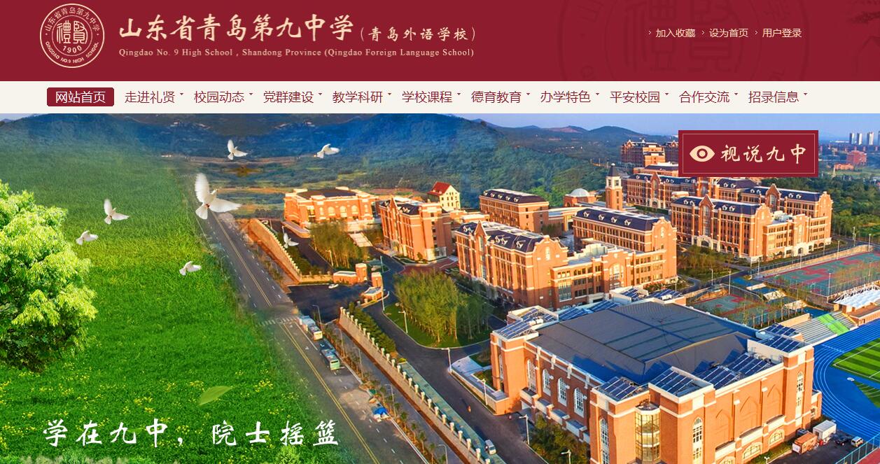 青岛九中创办于1900年,是具有117年历史的“名重齐鲁学界”的百年名校。前身是由被称为“伟大的德意志中国人”的著名汉学家、德国人卫礼贤建立的“礼贤书院”,为清末“废科举,兴学堂”背景下知名的早期新型学堂,青岛近代史上第一所中学,开岛城新式教育先河。建校百年以来,青岛九中为国家培养了大批栋梁人才,毕业生中人才辈出,各界知名校友荟萃,先后培养出了以两院资深院士、共和国“两弹一星”元勋王大珩,中国科学院院士曲钦岳、解思深、朱兆良,中国工程院院士陈秉聪、高从堦、谢立信、戚颖敏,国学大师王献唐、中央文献研究室主任逄先知、戏剧艺术家尚之四、书画家溥心畲、原航空航天部部长林宗棠、北京军区副司令兼北京军区空军司令李永金、国家田径管理中心总教练阚福林、书法家高小岩、诗人纪宇、电影艺术家崔嵬、国际象棋国际特级大师卜祥志等一大批院士、作家、国学大师、将军、省部级领导、各界拔尖人才等万千英才。在青岛教育史上有着特殊地位,素有“学在九中,院士摇篮”美誉。学校始终坚持“让学生成才,让家长放心,让社会满意”的办学宗旨,先后荣获“中华百年名校”、“全国未成年人思想道德建设工作先进单位”、“全国中小学思想道德建设活动先进单位”、“全国优秀外语实验学校”、“中国青少年创客教育联盟”、“中国青少年创客奥林匹克系列活动实验基地 ”、“首届全国中小学校园文化建设十佳示范学校”、“山东省先进基层党组织”、“山东省未成年人思想道德建设工作先进集体”、“山东省心理健康教育先进学校”、“山东省艺术教育示范学校”、“山东省教育国际交流与合作先进单位”、“省级绿色学校”、“山东省创客教育联盟”、“山东省中小学安全文化建设重点研究基地”、“青岛市文明单位标兵”、“青岛市先进基层党组织”、“青岛市十佳职业道德先进单位”、“青岛市办学水平督导评估优秀等级”、“青岛市教育管理先进集体”、“青岛市普通中小学现代化学校”、“青岛市中小学文明校园”、“青岛市AAA级健康校园”、“青岛市中小学德育工作先进集体”、“青岛市中小学校本培训示范学校”、“青岛市学校(托幼机构)食堂安全信誉度A级单位”、“青岛市职工职业道德建设先进单位”、“翻转课堂示范校信息化改革示范基地”、“青岛最具社会满意度十大名校”、“青岛教育改革创新实践十大名校”、“青岛互联网+创新峰会 智慧校园优秀单位”等荣誉称号。青岛九中历经117年风雨,教师主体已处在教学成熟期。九中拥有一支师德高尚、业务精湛、敬业奉献的专业化教师队伍,目前有特级教师2人,国家、省市级优秀教师10人,省市级学科带头人9人,省市级教学能手27人,青岛市青年教师优秀专业人才47人,聘请外籍教师18人。青岛九中构建了教育、教学、科研于一体的工作机制,形成了系统的办学思路。学校致力于建设名牌学校,创建具有“一流教育思想、一流教育基础、一流教育水平”的优质高中;实施名师带动战略和科研兴校战略;确保实现办学规模、办学条件、办学效益的突破。学校深化教学改革,文理并重,重视外语特色建设,全面推行分层次教学,充分调动学生的积极性,为每一位学生的成长成才创造了有利空间,历年高考稳居青岛市前茅,每年通过高校自主招生考试人数稳居青岛市、山东省前列,众多优秀的高三学子被清华、南开、北京航空航天、华中科大、同济等高校录取,因教育高质量、办学高效益,享誉社会各界。为满足人民群众对优质教育资源的渴求,青岛市委、市政府本着对人民负责、对历史负责的态度,投资近8亿元,在青岛青西新区高起点规划、高标准设计、高质量建设了青岛九中新校区(黄岛区七星河路559号)。2017年2月,青岛九中新校区(同时加挂“北京外国语大学附属青岛外国语学校”牌子)启用,教学功能区、食宿功能区、文体活动功能区错落有致,大气中透灵动,恢弘中见典雅。新校区占地面积270余亩,建筑面积10.83万平方米,学生宿舍、实验楼、教学楼、艺术楼、信息中心等标致性建筑,设计科学、功能齐全;学校绿化按照“春有花、夏有荫、秋有果、冬有绿”的要求,高起点规划、高标准栽植,高低起伏、错落有致,将全方位展示青岛九中的层次与水准。此外,为进一步加强学校特色建设,为学生提供国内一流的学习条件,新校区建有同声传译教室、第二外语小语种学科教室、创客学科教室、飞行模拟驾驶室等多个功能教室,同时配备相关的教育教学设备设施。学校以“见贤思齐”为校训,“全面发展、文理兼通、外语见长”已成为青岛九中鲜明的办学特色,1989年加挂“青岛外语学校”牌子。学校的外语学科课程体系在青岛市乃至山东省享有盛名。学生不仅要必修英语,而且至少要在德语、法语、日语、韩语、西班牙语、阿拉伯语等课程中选修一门小语种;不仅有外国语言课程,而且有全外语授课的外国文化课程和科学课程。学校设有“日语班”、“中加班”、“中美班”等中外合作办学班。学校先后与日本、德国、加拿大、法国、美国等多个国家建立友好互访及合作项目,为学生出国留学深造提供了中美交换生项目、法国ADIUT(科技学院)项目、澳大利亚国立大学直通项目和日本早稻田大学直通项目等诸多选择渠道。