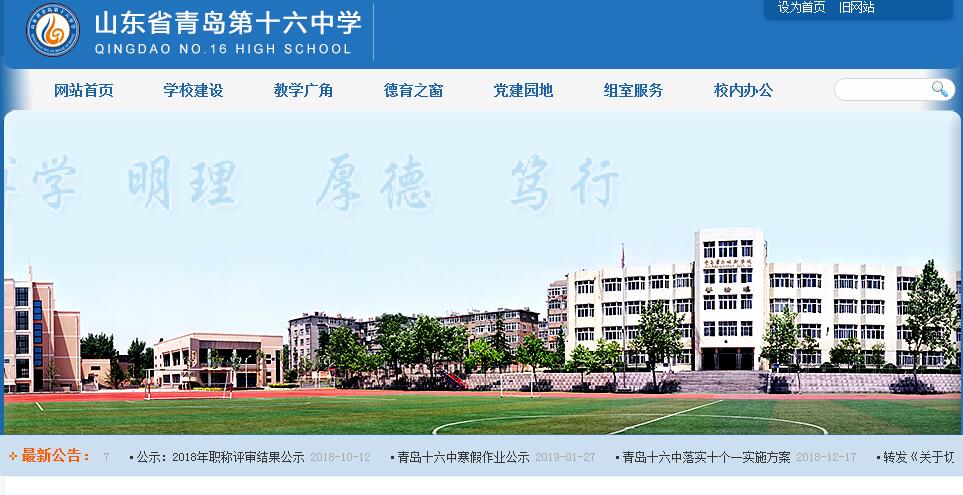 青岛十六中创办于1954年。省级规范化学校、省级绿色学校、青岛市花园式学校、青岛市平安和谐校园;学校现有十六中和十六中霍尔姆斯学校两部分组成。是经省教育厅和国家外国专家局批准的具备“接受外国学生资格学校”和 “聘请外国专家资格学校”。学校占地70余亩,建筑面积近2万平米。学校以“博学、明理、厚德、笃行”为校训,坚持“一切为了学生发展”的办学理念,五十多年的发展形成了良好的教风和学风,具有浓厚的文化学习氛围,是莘莘学子的读书圣地。在校学生2200人,教职工205人。中、高级教师占教师总数的69%。省市特级教师、优秀教师、教学能手、学科带头人等近40人,市级优秀专业人才、优秀班主任等近70人。学校通过英国大使馆文化教育处常年聘请外籍教师2人。化学、物理、生物、体育组被评为青岛市先进教研组;高中化学组被评为青岛市职工诚信示范岗,高中生物组、化学组被评为青岛市教育局巾帼文明岗。建校于1954年的山东省青岛第十六中学,作为岛城一所老校,曾经培养出数以万计的优秀人才,先后荣获了山东省规范化学校、山东省德耀齐鲁道德示范基地、山东省健康校园、青岛市精神文明先进单位等一系列荣誉称号。近年来,直面原四方老工业区生源质量变化等不利因素带来的压力,紧跟十八大以来中央对深化教育领域综合改革提出的要求和部署,青岛十六中坚持立德树人,着力推进“激智励行”品牌建设,凸显书法教育和中外合作办学的特色,走出了一条多元发展、内涵发展的改革之路。通过加强德育课程体系建设,深化课程内容改革,探索创新人才培养途径,青岛十六中为每一位学生的成长与成才铺路搭桥,收获了学校、教师与学生全方位发展的新成绩,走出了办好人民满意的教育的特色之路。作为青岛市中小学首届十佳德育品牌,“激智励行”贯穿于十六中的教育教学活动,辐射到各项工作中。学校加强“激智励行”品牌的课程建设,把养成教育作为德育的基础性工作,坚持以“圣陶杯”习惯强化月和“激智励行”系列活动为载体,使激励教育融入到学校教育教学的各个方面。通过生活德育、品行养成教育、优秀传统文化教育等培养学生健全人格,形成了十六中学生所特有的自主能力、阳光心态和坚毅品格,并进一步推动了良好的校风、教风和学风内涵发展。在积极与和谐的校园氛围中,学生个性化发展尤其是创新型人才培养模式的探索成为学校的中心工作。通过实施学校全员育人导师制、班教导会制度和教书育人“一岗双责”制度,从学生的心理健康教育、生涯规划教育和职业体验教育以及全新的创客教育等内容入手,为每一个学生的发展需求提供最适合的帮助,为每一位学生的成才梦想提供了最为有力的支撑。普通高中的改革,主要的着力点是在课程体系改革和课堂教学改革上,即一切的改革都将围绕让学生获得学习能力和学业水平的显著提高核心价值上。为此,青岛十六中以教科研为引领,加强校本课程建设,细化教学常规管理,推行“激励式小组合作探究课堂”教学改革,激发了学生学习的积极性,提高了学生自主合作学习能力,课堂教学改革取得实质性进展,全面提高了教学质量。一系列改革的推动与深化,离不开每一位教师的奉献与耕耘。十六中教师爱岗敬业、务实能干,一直是这所学校文化传统的核心财富。如今,全校上下凝心聚力抓质量,同心同德求发展。学校中青年教师占主体,中高级教师占教师队伍的70%以上,学校省市教学能手、学科带头人、青年教师专业人才等已初步形成梯队式分布,教师专业发展水平整体提升。近两年,共有40余人次在全国、省市级教学比赛中获奖。仅在2015年市教育局开展的“一师一优课”和“一课一名师”活动中,就有14位老师获得优课奖励,其中5位老师在市优质课比赛中分别荣获一、二等奖。中考、高考和学业水平考试成绩也持续攀升,呈现出良好的发展态势,受到上级领导、社会、家长一致好评。十六中是全市最先开展中外合作办学的公办学校,1995年开始与澳大利亚霍尔姆斯学院合作成立了青岛霍尔姆斯学校,由此积累了丰富的合作办学经验。2014年经市教育局批准,又创办了中澳合作国际人才培养班,引进国外优质教育资源,将普通高中教育与澳大利亚维多利亚州高中课程(VCE)体系有效结合,发挥办学经验与师资优势,形成独具特色的本土化国际高中课程,也为学生通过在国内高中学习就能考取世界知名大学铺就了又一条绿色通道。学校重视传统文化教育,也从悠久的校园文化传承中找到了特色发展的突破点。2014年成立了岛城首个高中书法班。学校与曲阜师范大学联合育人,成为曲师大优秀生源基地和曲师大书法学院教学实践基地,大学教授每月到校授课。同时聘请了青岛市书协、市青年书协8位书法名家入校担任顾问,定期指导学生。此外,教育部规划课题“中小学传统文化教育实践研究”子课题《书法教育在中学教学中的实践研究》、山东省教育科学“十二五”规划2015年度课题《中学书法教育系列课程开发与实践的研究》的立项研究,为学校的书法教育和书法特长人才培养提升了理论水平。书法班学生定期到曲师大、中国美院游学。从成立至今,已有百余人次在省市书法大赛中获奖。书法教育,如今不仅仅是十六中校园文化的独特魅力所在,也为更多学生走进