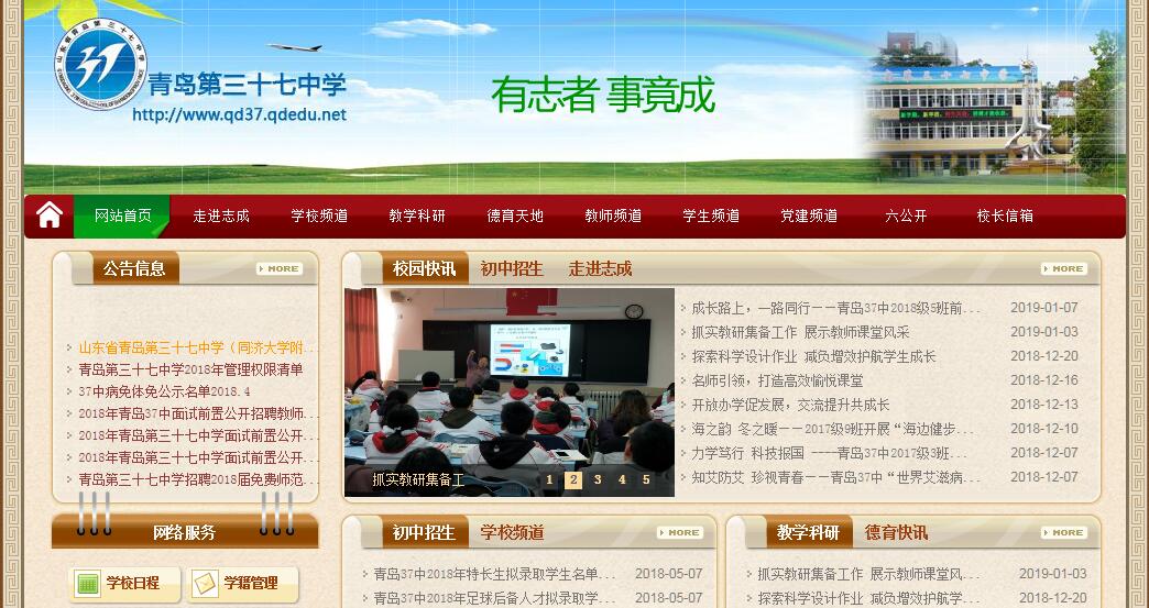 山东省青岛第三十七中学(同济大学附属青岛礼贤初级中学), 始建于1960年7月,位于青岛市上海路7号。在校32个教学班,师生近1400人。学校坚持以人为本,按照“德育为先、能力为重、全面发展”的总体要求,以励志教育为载体,以特色课程开发建设为突破口,以高效常态课堂教学研究为抓手,以科学民主管理为保障,走内涵式立校之路,不断提高教育教学质量,促进教师发展和学生健康成长,努力把学校建设成为师生共同成长的精神家园。教学中深入推广“激趣导学、合作学习”教学模式,让学生“学会、会学、乐学”,打造高效课堂、愉悦课堂,促进了教学质量的不断提升,为优质高中连年输送了大批优秀学生。在德育工作方面,抓好常规工作的同时,以励志教育为载体,以“做文明、大气的中学生”为主题,按照“德育为先,育人为本,贴近实际、贴近生活、贴近学生群体”的工作原则,促进学生和谐发展,健康成长。在德育活动中,强调以践行促养成、以外在促内化,体现时代精神,培养学生民族精神、科学精神,公民意识,把严格管理同人文关怀紧密结合起来,教育学生“求真、求善、求知”,为学生的终身发展和幸福奠基。“一所学校拥有杰出的教师,这就是一所杰出的学校”。学校领导班子精干、团结、务实,以“教师发展促学生成长”的理念指导教师队伍建设,先后近30名教师获得市学科带头人、教学能手、德育先进个人、青年教师优秀专业人才称号,语文组、英语组、化学组、数学组相继被评为青岛市诚信示范岗和建功立业标兵岗,优秀的教师群体,让课堂教学精彩纷呈,学校开设二十余门选修课,成立了近三十个学生社团,供学生们自由选择,人文、科技、外语已成为学校三大办学特色。围绕初中阶段学生年龄特点和成长规律,实施从关注习惯养成,注重品行培养,提高身体素质与运动技能,多维兴趣激发,个性形成与能力提升等全方位、全过程育人。科技节、体育节、艺术节、读书节等活动精彩纷呈,鼓励学生在活动中张扬个性;班级学生干部轮岗制、学生干部换届竞选、国旗下讲话、辩论大赛等为学生搭建能力展示平台;外聘专家、外籍教师、优秀家长讲师团参与学校课程建设,满足了学生增长见识、开阔眼界、参与体验的需求。家长深度参与学校管理,家校沟通愉快,科学指导家庭教育。学校食堂配餐丰富,讲营养重安全,为学生健康护航。2018年6月,青岛37中加挂“同济大学附属青岛礼贤初级中学”校名。学校依托同济大学资源优势,组织专家协助学校开发和整合各类教育资源,扩大学校影响力;邀请同济大学的院士、教授、同济附中特级教师以及上海基础教育专家到学校面向教师群体开展定时定人的教科研工作指导;组织学生参加同济大学全国优秀学生夏令营,培养和选拔有学科特长和创新潜质的学生,并依托同济大学国内外资源,组织开展各类学生游学活动。与同济大学的联合办学,为学校的跨越发展注入新的力量。全面提高教育教学质量,全面培养合格学生,办人民满意的教育,是学校的一贯追求,近年来,学校先后获得青岛市精神文明标兵单位、市文明校园、市三八红旗集体、全国优秀家长学校、市规范化学校、市十佳德育品牌、市科普示范学校、市书香校园、市家长满意度名校等七十多项荣誉称号,办学水平逐年提升,育人成果愈加显赫。学校将凝神聚力,深化课堂教学改革,加强教师队伍建设,加强学校管理,以诚心、爱心、责任心真诚培育学生,全力打造优秀教育品牌学校,为教育事业的发展再创辉煌。