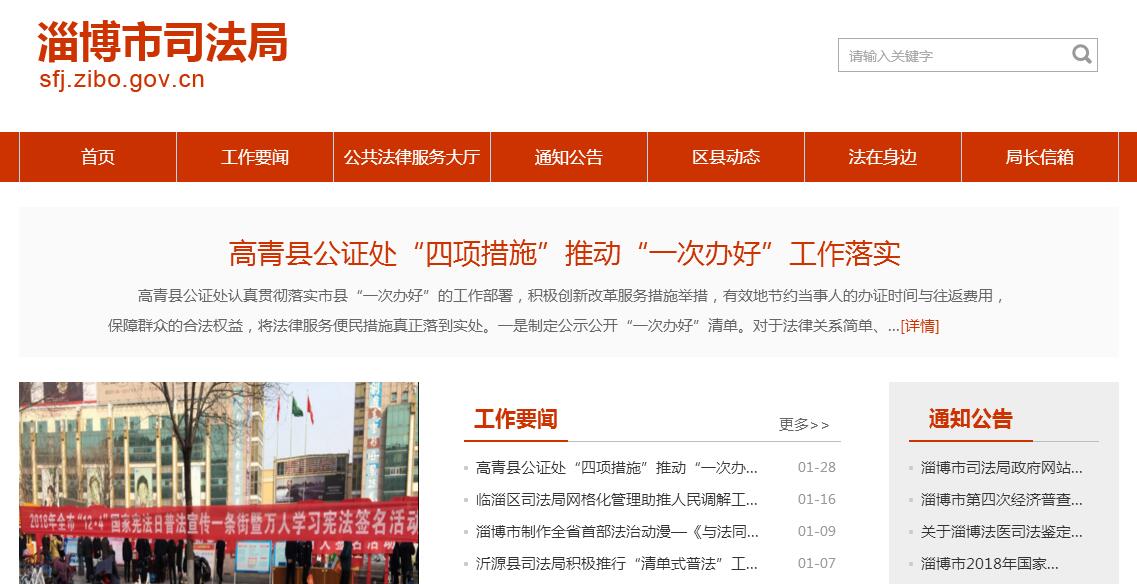 淄博市司法局主要职责:1、研究拟订全市司法行政工作政策规章,编制司法行政工作中长期规划、年度工作计划并组织实施。2、管理监督山东省湖田监狱工作。3、协调驻淄博的省属监狱在执行刑罚、狱政、场所建设和发展生产等方面与我市有关部门的关系。4、指导对刑满释放人员的过渡性帮教安置工作。5、制定全市法制宣传教育和普及法律常识规划并组织实施,指导全市依法治理工作和对外法制宣传。6、指导、监督律师、法律顾问和法律援助工作,管理在淄博设立的外国(境外)律师机构。7、指导、监督公证机构及公证业务活动,管理涉外、涉港澳台的公证事务。8、指导下级司法行政机关管理人民调解工作、基层法律服务工作、“148”法律服务专线工作;参与社会治安综合治理工作;配合人民法院做好人民陪审员工作。9、指导和管理面向社会服务的司法鉴定工作。10、指导全市法学教育和法学理论研究工作。11、参与地方性法规、规章的拟订工作,负责司法行政系统外事工作及对港澳台联络工作。12、指导管理全市司法行政系统装备工作,监督直属单位国有资产的保值增值。13、负责司法行政系统的基层党组织建设工作;指导司法行政系统队伍建设和思想政治工作;协助区县党委管理区县司法局领导干部。14、指导管理全市社区矫正工作。15、按规定承担国家司法考试的有关工作。16、承办市委、市政府交办的其他事项。