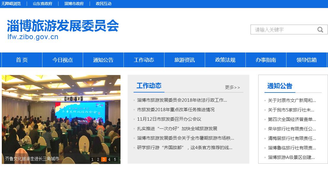 淄博市旅游发展委员会主要职责:(一)贯彻执行旅游法律、法规与方针、政策;起草有关地方性旅游法规、规章草案;统筹协调旅游业发展,拟订全市旅游发展战略、规划;对旅游政策、法律法规、规章执行情况进行监督检查。(二)负责制定旅游市场开发战略并组织实施;加强旅游交流与合作,贯彻执行国家出国旅游和赴港澳台旅游政策;推动淄博旅游整体形象及旅游品牌体系建设。(三)组织全市旅游资源的普查、规划,统筹协调各类资源的旅游开发、利用与保护; 指导全市重点旅游区域、旅游目的地和旅游线路的规划开发;监测全市旅游经济运行;负责旅游统计及行业信息发布。(四)负责推进旅游业与相关产业的融合发展,优化全市旅游产业结构和产品结构,培育壮大市场主体;协调和指导乡村旅游、红色旅游、假日旅游、生态旅游工作,引导休闲度假。(五)规范旅游市场秩序,监督管理服务质量,规范旅游企业和从业人员的经营和服务行为,推进旅游联合执法;维护旅游消费者和经营者合法权益;负责A级景区、星级酒店、旅行社安全监督管理工作,指导旅游突发事件应急救援工作;指导全市旅游行业精神文明建设和诚信体系建设,指导全市旅游行业组织的业务工作。(六)协调推进部门合作,推动旅游基础设施和旅游公共服务设施的建设与管理,优化旅游环境,提升旅游服务功能,推进旅游公共服务体系建设。(七)制定并组织实施旅游人才规划,指导全市旅游培训工作。(八)承办市委、市政府交办的其他事项。