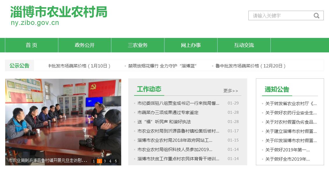 淄博市农业农村局主要职责:(一)拟订全市农业和农村经济中长期发展规划、政策并组织实施;起草有关地方性法规、规章草案;参与拟订涉农的财税、价格、金融保险、进出口等政策,提出农业产业保护的政策建议;推进农业依法行政。(二)承担完善农村经营管理体制的责任;提出深化农村经济体制改革和稳定完善农村基本经营制度的政策建议,指导农村改革试验区工作;指导农村土地承包、土地承包经营权流转和承包纠纷仲裁管理;负责减轻农民负担和村民筹资筹劳的监督管理工作,指导农村集体资产和财务管理;指导、扶持农业社会化服务体系、农村集体经济组织、农民专业合作社、家庭农场和农产品行业协会的建设与发展。(三)指导农产品生产,组织实施扶持和促进农业生产发展的政策措施,引导农业产业结构调整和产品品质的改善;会同有关部门指导农业标准化、规模化生产;提出农业固定资产投资规模和方向、市级财政性资金安排的建议;配合有关部门组织实施农业综合开发有关项目。(四)促进农业产前、产中、产后一体化发展;组织拟订农业产业化经营发展规划、政策并组织实施;拟订大宗农产品市场体系建设与发展规划,提出促进大宗农产品流通的政策建议和主要农产品的进出口建议;组织协调菜篮子工程;指导棉花生产;培育、保护和发展农产品品牌。(五)承担农产品质量安全监督管理的责任;组织拟订全市农产品质量安全监管体系建设规划并组织实施;开展农产品质量安全风险评估,发布有关农产品质量安全状况信息;提出划定农产品禁止生产区域的建议;负责农产品质量安全监测和农业环境监测;负责农业生产标准和技术操作规程的组织实施;负责农产品质量及病虫草害突发事件应急处理;负责有关农业检验检测机构的考核工作;依法实施符合农产品安全标准的农产品认证和监督管理。(六)会同有关部门监督实施农业生产资料国家标准;指导、协调全市农业生产资料市场体系建设;依法实施农作物种子(种苗)、农药、肥料、农用膜、食用菌种、蚕种的许可和监督管理。(七)承担农业防灾减灾的责任;监测、发布农业灾情;协调种子、化肥等救灾物资储备和调拨,提出生产救灾资金安排建议,指导紧急救灾和灾后生产恢复;负责农作物重大病虫害防治和农业植物防疫检疫工作;参与拟订全市政策性农业保险制度,组织实施政策性农业保险。(八)收集、发布农业和农村经济信息,开展有关农业统计工作,监测分析农业和农村经济运行;负责农业信息体系建设,指导农业信息服务。(九)制定全市农业科研、农技推广的规划、政策并组织实施;指导农技推广体系改革与建设;组织引进农业先进技术,组织实施农业领域的高新技术和应用技术研究、农业科技成果转化和技术推广;负责农业植物新品种保护和农业转基因生物安全监督管理工作。(十)会同有关部门拟订全市农业农村人才队伍建设规划并组织实施;参与开展农村实用人才培训工作;承担农民科技培训和农村劳动力转移就业培训工作;负责农业农村人才的专业技术资格和从业资格管理的有关工作;指导农业教育有关工作。(十一)组织农业资源区划工作;指导农业生态环境、农业生物物种资源的保护和管理;依法负责有关野生植物的监督管理工作;拟订耕地及基本农田质量保护与改良政策并指导实施,依法管理耕地质量;运用工程设施、农艺、农机、生物等措施发展节水农业。(十二)拟订并组织实施全市生态农业建设规划;指导农村可再生能源综合开发与利用,指导农业生物质产业发展和农业农村节能减排;承担指导农业面源污染治理的有关工作;指导生态农业、循环农业、都市农业的发展;牵头管理外来物种。(十三)承办农业涉外事务;参与拟订农业对外开放政策和外向型农业发展规划,指导农业外向型经济发展;组织开展农业贸易促进工作和国际经济、技术交流与合作,协助有关部门组织实施农业援外项目。(十四)承办扶贫开发工作;组织协调全市农民体育工作。(十五)指导监督全市畜牧兽医(包括兽药、饲料)工作。(十六)指导监督全市农业机械管理(包括农用运输车管理和安全监理)工作。(十七)协助有关部门搞好农村基层组织建设;会同有关部门组织农业劳动模范的评选管理工作。(十八)承办市委、市政府交办的其他事项。