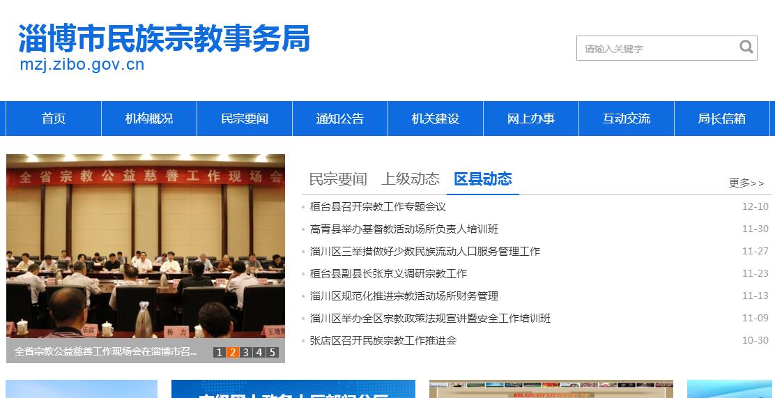 淄博市民族宗教事务局主要职责:(一)贯彻执行党和国家、省、市关于民族宗教工作的方针政策。研究起草相关地方性法规、规章草案,拟订全市民族宗教工作政策;负责监督检查民族宗教政策和法律、法规的执行情况;组织开展民族宗教理论、政策和民族宗教工作重大问题的调查研究并提出建议;负责开展民族宗教政策和法律、法规的宣传教育工作。(二)负责协调推动有关部门履行民族宗教工作相关职责,促进民族宗教政策在经济发展和社会事业有关领域的落实。(三)参与拟订少数民族事业发展规划。提出少数民族经济发展的特殊政策和措施建议,承办少数民族扶贫事宜;参与组织协调对少数民族经济的支援;会同有关部门共同促进少数民族各项社会事业的发展。(四)依法保障少数民族的合法权益,巩固和发展社会主义民族关系。尊重少数民族风俗习惯,维护民族团结;配合有关部门处理涉及民族宗教方面的重大事件,维护社会稳定;负责民族团结进步宣传工作,承办有关表彰活动。(五)负责联系少数民族干部和少数民族代表人士,协助有关部门做好少数民族干部的培养、教育和使用工作。(六)依法保护公民宗教信仰自由和正常的宗教活动,维护宗教界的合法权益,促进宗教关系和谐。(七)依法履行管理职能,会同有关部门防范利用宗教进行的非法、违法活动,抵御境外利用宗教进行的渗透活动。(八)指导宗教团体加强自身建设、依法依章开展活动,办理宗教团体需由政府解决或协调的有关事务。(九)联系宗教界上层人士,推动宗教界进行爱国主义、社会主义及拥护祖国统一和民族团结的自我教育,发挥宗教界人士和信教群众在促进经济社会发展中的积极作用。(十)负责处理民族宗教工作领域有关涉外事宜,指导民族宗教界开展对外和对港、澳、台地区的友好交往活动,参与涉及民族宗教对外宣传工作。(十一)参与少数民族专项资金的管理和专项贷款项目的论证与推荐;参与宗教工作方面专项资金的管理。(十二)建立和完善少数民族事业发展综合评价监测体系;推进民族宗教事务管理信息化建设。(十三)承办市委、市政府交办的其他事项。