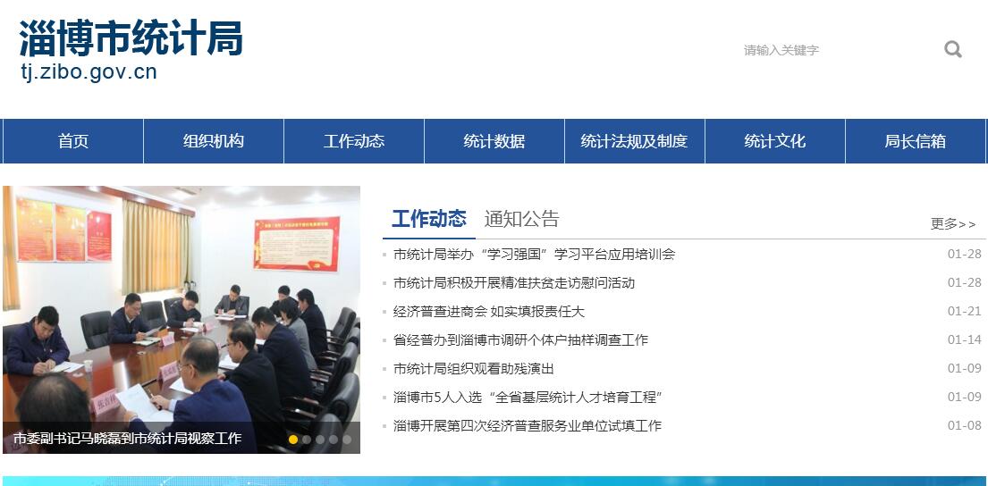 淄博市统计局主要职责: (一)承担组织领导和协调全市统计工作,确保统计数据真实、准确、完整、及时的责任;贯彻执行统计工作法律、法规和方针、政策,起草有关地方性法规、规章草案;拟订全市统计工作规划、政策、统计制度和统计标准并组织实施;依法实施统计执法检查并查处统计违法行为。(二)建立健全全市国民经济核算体系和统计指标体系;依法审批各区县和各部门统计调查项目,审核统计计划、调查方案;建立健全统计数据质量审核、监控和评估制度,开展对重要统计数据的审核、监控和评估;指导部门统计工作。(三)根据国家重大国情国力普查计划、方案,拟订全市的实施方案,会同有关部门组织实施人口、经济、农业等重大国情国力普查;承办市委、市政府和有关部门委托的社情民意调查;组织实施全市国民经济核算制度;统一组织协调各区县、各部门的社会经济调查,汇总整理全市的基本统计资料;对全市国民经济、社会发展、科技进步和资源环境等情况进行统计分析、统计预测和统计监督,向市委、市政府及有关部门提供统计信息和咨询建议。(四)统一核定、管理、公布全市性的基本统计资料,定期发布全市国民经济和社会发展情况的统计信息。(五)建立并管理全市统计信息自动化系统和统计数据库系统,指导各区县统计信息化系统建设。(六)协助各区县管理统计局局长、副局长;指导全市统计基层基础建设和统计队伍建设;监督管理各区县统计部门由中央、省、市级财政提供的统计经费。(七)指导全市统计科学研究、干部培训等工作。(八)承办市委、市政府交办的其他事项。