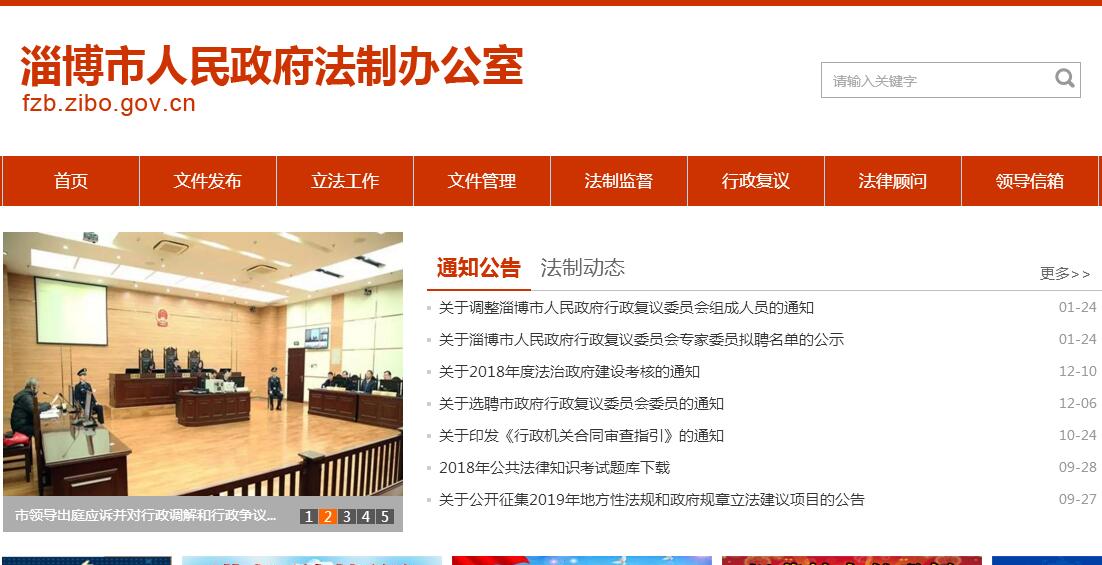 淄博市人民政府法制办公室主要职责:(一)承担市政府推进依法行政的日常工作,负责全市依法行政的综合协调、督促指导、检查考核和政策研究;调查研究依法行政和法治政府建设中出现的新情况、新问题,提出推进依法行政的具体措施和工作建议;承担市政府在依法行政方面的参谋、助手和法律顾问职责。(二)承担统筹规划市政府立法工作的责任,拟订市政府立法规划和年度立法工作计划,报市政府批准后组织实施。(三)承担审查报送市政府的地方性法规草案、规章草案的责任;负责起草或者组织起草有关重要地方性法规草案、市政府规章草案;负责地方性法规草案、市政府规章草案向社会公开征求意见;负责上级立法机关立法草案征求意见的办理工作。(四)承办市政府规章的立法解释工作;负责市政府规章实施情况的评估工作;负责清理、编纂市政府规章工作,对地方性法规提出清理或者修改意见。承担市政府规章报送备案工作。承担对全市范围内的行政许可行为进行日常监督、管理和指导职责。(五)承担市政府重大行政决策合法性审查的具体工作;承担以市政府或市政府办公厅名义发布的规范性文件的合法性审查工作;承担对区县政府、市政府部门规范性文件的备案审查工作;承担市政府规范性文件报送备案工作。(六)承担市政府法律顾问委员会日常工作,负责市政府法律顾问的日常业务管理。(七)负责市政府行政执法监督的具体工作。(八)研究行政诉讼、行政复议、行政赔偿、行政处罚、行政许可、行政收费、行政强制等法律法规实施以及行政执法中带有普遍性的问题,向市政府提出完善制度和解决问题的建议;负责推行行政执法责任制;承担重大行政执法决定备案工作。(九)负责协调部门之间在法律、法规、规章实施中的矛盾和争议;会同有关部门推进相对集中行政处罚权工作;参与推进行政审批制度改革工作;参与推进相对集中许可权工作。(十)承担市政府行政复议工作事项;受市政府委托代理行政应诉和其他诉讼案件;承办由市政府作为赔偿义务机关的行政赔偿事务;指导、监督全市行政复议和行政应诉工作;指导全市行政复议队伍建设;负责全市行政复议人员资格的管理工作;承担市政府行政复议委员会日常工作。(十一)负责市政府行政调解、行政裁决的综合协调和指导工作;会同有关部门健全行政调解制度,完善行政裁决、行政复议等工作机制。(十二)组织开展依法行政、法治政府建设、政府法制工作的理论研究和宣传培训工作;承担市政府领导集体学法的具体工作;开展对外法制业务交流。(十三)承办市委、市政府交办的其他事项。