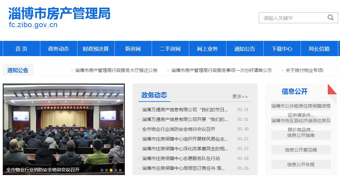 淄博市房产管理局主要职责:(一)贯彻落实国家、省有关住房保障和房产管理工作的方针、政策和法律、法规;拟订我市住房保障和房屋权属管理、房屋租赁、房屋面积管理、房地产估价、房屋中介管理、物业管理、房屋征收拆迁的地方性法规和规章制度并组织实施。(二)拟订全市住房保障和房产管理发展规划和年度计划并组织实施;负责全市住房保障和房产行业管理,提出住房保障和房产管理重大问题的政策建议。(三)承担保障城镇低收入家庭住房的职责。拟订廉租住房政策,会同有关部门做好中央、省和市廉租住房资金安排并监督实施;负责全市经济适用住房建设的责任,编制经济适用住房建设计划并组织实施;负责廉租住房、政策性住房的建设工作;负责廉租住房实物配租、住房租赁货币补贴工作。负责市经济适用住房领导小组的日常工作。(四)承担推进住房制度改革的职责。指导并组织实施全市住房制度改革,制定有关配套政策并组织实施;会同有关部门拟订住房公积金和其他房改资金的有关政策、办法和发展规划,会同有关部门编制全市住房资金的使用计划和贷款计划,监督住房资金的投向及运营,承担市住房委员会的日常工作。(五)负责全市城市和村镇房屋登记工作,会同有关部门审批城镇私人建房工作。(六)根据有关规定和管理权限,依法履行对房地产市场进行监督管理的职责。组织拟订房地产市场监管政策并组织实施;监督指导全市房屋的安全管理和危房鉴定工作。(七)负责全市的房屋征收拆迁管理工作和拆迁服务单位的资质审核和管理工作。负责编制城市房屋征收拆迁中长期规划和年度计划并组织实施,负责全市房屋征收拆迁项目的审批。(八)指导全市住宅小区的物业管理工作及小区物业管理企业的资质管理,监督、协调日常物业管理活动,对物业管理招投标活动进行监督管理。(九)负责直管公房的管理和国有房产监管运营工作。(十)负责全市住房保障和房地产管理信息系统的建设、管理和统计、分析工作。(十一)承办市委、市政府交办的其他事项。
