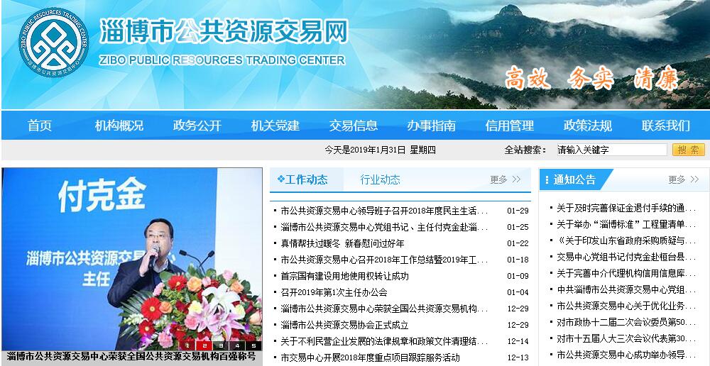 淄博市公共资源交易中心(以下简称市资交中心)于2013年7月24日正式成立,是淄博市人民政府直属的正县级财政拨款事业单位,目前编制44人,内设综合科、人事教育科、业务受理科、建设工程交易科(挂淄博市建设工程交易中心牌子)、政府采购交易科、土地和矿业权交易科(挂淄博市土地和矿业权交易中心牌子)、产权交易科(挂淄博市产权交易中心牌子)、财务科、信息技术科、监督科等科室,在淄川区、博山区、周村区、临淄区、桓台县、高青县、沂源县7个区县设立分中心,均为正科级分支机构,主要负责贯彻执行国家及省、市公共资源交易的政策法规及管理规定等,承担所在区县公共资源交易的组织实施和服务等工作。市资交中心位于淄博市高新区柳泉路125号先进陶瓷产业创新园B座,设有相对独立的业务受理区、评标区、开标区、办公区等四大功能区,建有评标室6个,开标室5个,答疑室3个,电子监控室等其他功能室9个。采用物理、技术、流程“三重隔离”方式,集成安装了音视频监控、信息发布、电子评标、变声对讲、专家抽取等系统,设立电子门禁、指纹与身份证识别、自动安检等设备,实现了全目标、全方位、全时段电子监控,整个交易场所与交易过程都在阳光透明的环境下进行。按照电子化交易的要求,搭建了以“三库三平台”(综合评标专家应用库、中介机构资源库、投标(交易)企业资源库,公共服务平台、项目交易平台、监管分析平台)为主要架构,融合建设工程、政府采购、土地和矿业权交易、产权交易等功能模块,兼有银行、数字证书、小额支付、专家抽取等功能接口的公共资源交易平台,实现了统一信息公告、投标报名、招标文件下载、投标保证金收退、开标评标、中标公告等覆盖全过程的网上交易。市资交中心秉承“公开公平公正,高效务实清廉”的服务理念,按照“政府主导、管办分离、集中交易、规范运行、部门监管、行政监察”的要求,组织公共资源交易的实施,努力打造高效便民利民的“阳光交易平台”。其主要职责:一、贯彻执行国家及省、市有关公共资源交易的法律、法规和政策,提出公共资源交易管理制度、交易规则建议方案,受理公共资源交易项目并提供场所、设施和见证服务。二、受委托或授权组织实施公共资源交易目录范围内的交易、自主交易工作。三、组织招标人选择中介代理机构,按规定查验进场交易项目的交易资格手续。四、负责市公共资源交易平台的建设、运行和维护工作,承担公共资源交易信息发布、网上报名和收集、保存交易相关资料及建立公共资源交易信用档案工作。五、负责协助建设、维护和使用淄博市公共资源交易综合评标评审专家库;负责建设、维护和使用中介代理机构信用信息库和投标(交易)企业信用信息库。六、负责交易服务费的征缴和投标保证金的收取、退付和划转。七、负责维护公共资源交易秩序,为公共资源交易综合管理、行政监管、监察审计提供监管平台,协助有关部门受理和处理交易行为的投诉。八、承办市委、市政府交办的其他事项。
