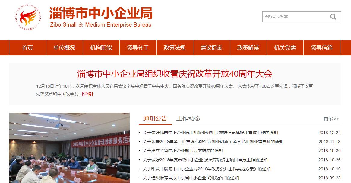 淄博市中小企业局主要职责:(一)贯彻国家、省、市有关中小企业、乡镇企业、个体私营经济发展的法律、法规和方针、政策;研究提出全市中小企业、乡镇企业、个体私营经济的发展战略和发展规划,拟定有关政策法规及管理办法,并会同有关部门的监督实施。(二)根据国家产业政策,参与拟定我市中小企业、乡镇企业的有关产业政策总体规划和产业结构政策及产业区域政策;指导全市中小企业、乡镇企业、个体私营经济组织合理布局和产品、产业结构调整,提高产品质量和经营管理水平。(三)指导全市中小企业、乡镇企业、个体私营经济深化改革,对其发展中的重大问题提出政策性建议。(四)指导全市中小企业、乡镇企业、个体私营经济的财务管理、内部审计、质量、安全、劳动、环境保护、资产管理、资产评估等工作。(五)指导全市中小企业、乡镇企业、个体私营经济组织的科技进步和技术创新;负责审核、申报重点技术改造项目;根据国家标准,承担中小企业划型的组织申报工作;组织指导中小企业、乡镇企业开展对外经济技术交流与合作,协调指导中小企业、乡镇企业利用外资和出口创汇工作。(六)负责中小企业、乡镇企业、个体私营经济组织的统计工作,对经济运行情况进行分析、汇集、发布有关经济技术信息,提供信息咨询服务;负责全市个体私营经济专业村、产业镇(乡)、经济园(试验区)的认证工作;负责国家、省级园区的申报并会同有关部门审核审批市级园区工作。(七)会同有关部门负责乡镇企业家、个体私营企业家的评选工作;组织中小企业、乡镇企业开展职工教育培训工作。(八)会同有关部门组织实施名牌战略,培育和扶持名优新产品;协同有关部门查处和影响制约中小企业、乡镇企业发展的行为,依法保护其合法权益,规范和维护正常经济秩序。(九)组织有关部门检查、考核各区县及市直有关部门关于发展中小企业、乡镇企业、个体私营经济各项任务的完成情况,会同有关部门制定有关评选先进的标准并组织实施;负责先进典型的总结、宣传、推广工作。(十)依据国家、省有关法律、法规、规章组织建立中小企业、乡镇企业、个体私营经济社会化服务体系,经济信用担保体系和发展基金。(十一) 负责指导中小企业推进管理制度创新;负责推动中小企业实施“互联网+”行动计划,为中小企业产业创新、跨界融合和开展电子商务提供服务;负责创业创新学院的创办及组织、管理工作;负责指导中小企业融资租赁、企业上市、外贸综合服务等有关工作。(十二)承办市委、市政府及市经济贸易委员会交办的其他事项。