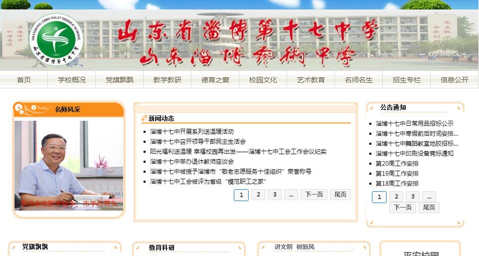 创建于1981年的山东省淄博第十七中学,是省级规范化学校、省依法治校示范学校、省艺术教育示范学校、省体育传统项目学校、省科普示范学校、省电化教育示范学校、省绿色学校、市级文明单位、市级花园式单位、市学校文化建设先进单位、市教育工会工作先进单位,“振兴淄博劳动奖状”获得者。突出成绩赢赞誉,多种渠道育人才,学校在文理并重、全面发展的基础上,致力于拓展优质特色办学之路,多次被市教育局表彰为淄博市普通高中教学工作先进单位。学校有一支师德高尚、敬业奉献、结构合理、业务精湛、充满活力的教师队伍,其中具有中、高级职称教师170人,艺术专业教师56人,全国模范教师1人,全国优秀教师1人,省市特级教师4人,省优秀教师8人,市教书育人楷模1人,省市区学科带头人、教学能手、淄博名师、骨干教师56人。耿耿园丁,众志成城,三十六载辛勤耕耘,学校先后为国家培养出一大批优秀人才。在2016年淄博市社情民意调查中,社会满意度达到99.5%,是一所艺术特色鲜明的高中学校。为适应学生全面发展的需要,学校建立了多媒体教室、微机室、电子阅览室、综合艺术楼等,为学生全面发展、个性发展创造了条件。学校现有配套的艺术训练设施:装备了可以容纳400人的演播大厅,配置了现代化设施的练功厅、排练厅、琴房、画室、影视表演室、播音主持室等系列专业教室。作为全市唯一一所被市政府批准的市级艺术中学,现在已成为西南大学、山东师范大学、福建师范大学、上海视觉艺术学院、上海体育学院、南京体育学院、临沂大学等多所高等院校艺术教育培训和生源基地。连续十年承办山东省省外高等院校艺术类专业测试考点工作,学生不出校门就可以参加全国各艺术高校的专业考试,有利于考生取得优异成绩。学校艺术教育历史悠久,积淀深厚,成绩卓著,培养了一大批优秀学子:全国金话筒奖获得者霍小语,省市著名节目主持人毛馨、孙亮、酒新鹏、韩磊、孙先雯、梅颖、许姗姗、王萌昱、王晓东等;前中国国家女子足球队主教练郝伟,中国男足主力刘健;热播电影《诱狼》主演罗昱坤,电视剧《国防生》主演邹廷威、电影《80后》主演伊娜、电影演员徐凌雪,中央戏剧学院的任运杰,北京儿童艺术剧院的赵斌,中央音乐学院的房鉴泽,解放军艺术学院的高宾,上海戏剧学院孙子烨、李亚泽,中国戏曲学院的孙子微,中央美院马新月、张沛森,北京服装学院张聪,北京体育大学孙鹏宇、石业鹏……。