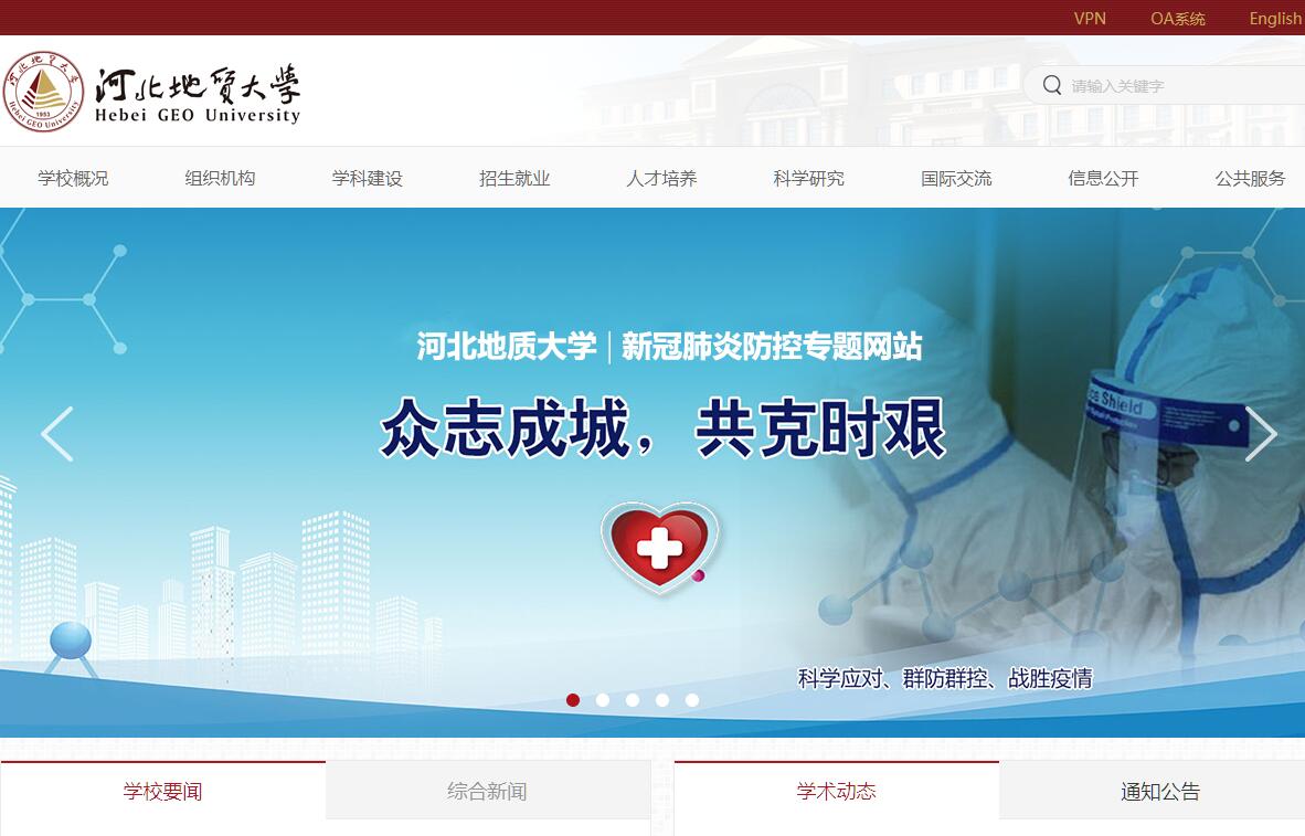 河北地质大学创办于1953年,是原地质部直属五大院校之一,是国土资源部、河北省人民政府共建大学,省属重点骨干大学,中国科学院院士李廷栋任学校名誉校长。作为新中国最早设置经济管理类专业的原地质部直属院校,学校始终以“为资源环境可持续发展提供人才和科技支撑”为核心使命。秉承“达观博物”的校训,弘扬“艰苦奋斗,求实创新”的光荣传统,历经60余年的办学历程,学校逐渐形成了“地经渗透,工管结合”的办学特色。时至今日,学校拥有理学、工学、管理学、经济学、法学、文学、艺术学7大学科门类,65个本科专业,其中有4个国家级特色专业,4个国家级、省级综合改革试点专业,4个河北省高等学校本科教育创新高地,8个河北省高等学校品牌特色专业。学校拥有地质学、地质资源与地质工程、工商管理、管理科学与工程、计算机科学与技术、法学、应用经济学、数学、材料科学与工程、环境科学与工程、公共管理11个一级学科硕士学位授权点(涵盖51个二级学科硕士授权点),地质工程、工商管理(MBA)、会计(MPACC)、金融、艺术、应用统计、工程管理7个专业硕士学位授权领域,拥有同等学历硕士学位授予权。学校面向全国31个省、直辖市、自治区招生,全日制在校生约18000人。2016年,学校成为博士学位授权立项建设单位。学校现有专任教师900多人,其中48%具有高级专业技术职务,90%具有博士、硕士学位。他们当中有李四光地质科学奖获得者、政府特殊津贴专家、省管优秀专家、省有突出贡献的中青年专家、省社会科学优秀青年专家、省青年拔尖人才、省级教学名师等75人。近年来,学校先后引进了中科院院士刘嘉麒,工程院院士毛景文,“长江学者”翟志强,德国洪堡学者、“国家杰青”获得者季强,“千人计划”专家、欧洲科学院院士李召良,“千人计划”专家陈锟山等一批杰出人才。学校另聘有兼职教授、客座教授187人,其中院士12人。学校高度重视办学保障能力提升。图书馆现有藏书150万册,中外文纸质期刊1400余种,电子图书25万册;拥有地学和经济管理2个国家级实验教学示范中心,水资源环境、珠宝首饰与矿物加工等5个省级实验教学示范中心;学校建有国家级、省级等各级实习实训基地104个;学校还建有地球科学博物馆和钱圆金融博物馆,其中地球科学博物馆是国家、省、市科普教育基地和素质教育基地。学校始终坚持立德树人,因材施教,通过全面深化人才培养模式改革,强化创新创业教育,为学生全面发展、个性化成才提供保障。近五年来,本科学生完成科研项目590余项,发表科技论文580余篇;在“创青春”全国大学生创业大赛、“挑战杯”全国大学生课外学术科技作品竞赛、数学建模、广告艺术、人文知识、英语大赛、攀岩、足球等竞赛中,获得国家级奖项249项,省级奖项514项;每年有百余名同学获国家级、省级荣誉称号,“2012年度中国大学生年度人物”唐建哲同学受到习近平总书记的接见。为促进学生就业,提高就业质量,学校每年都组织近百场各类型招聘会,邀请近千家企事业单位到学校招聘人才,为毕业生提供就业岗位20000余个。近五年,硕士研究生就业率达100%,本科生就业率均在95%以上。近年来,学校科研成果丰硕,先后获国家科技进步奖、国家级教学成果奖4项,2017年季强教授团队在同一期《Nature》杂志上发表了两篇高水平学术论文。学校拥有9个省级重点学科和重点发展学科,拥有河北省矿产资源战略与管理研究基地、河北省水资源可持续利用与产业结构优化协同创新中心等7个省部级科研基地,拥有水资源可持续利用与开发、光电信息与地球探测技术等省级重点实验室及130余个专业实验室。学校不断提升开放办学格局,为师生发展和服务国家提供有力支撑。学校与英国、美国、加拿大、德国、俄罗斯、澳大利亚、法国、韩国、捷克等国家的20多所高校建立了友好合作关系,广泛开展了学生互换、学分互认、学位互授、科研合作等多种形式的合作。学校的捷克奥斯特拉发技术大学孔子课堂,在积极传播中国文化服务“一带一路”倡议的同时,也为师生与欧洲的交流架起了友好的桥梁。六十五年来,学校培养了十多万毕业生,国土资源部原副部长徐德明,中国工程院院士武强、毛景文,中国科学院院士侯增谦,南极科考队队长李院生、吴根水,暨南大学校长胡军,李四光地质科学奖获得者张宏,“张衡一号”卫星工程首席科学家申旭辉,华夏人寿保险公司总裁赵子良,中海油总公司总地质师谢玉洪等是他们当中的杰出代表。学校的建设和发展得到了各级领导的亲切关怀与大力支持。毛泽东、胡锦涛、习近平等党和国家领导人都曾亲切接见我校师生。温家宝同志把他亲自采集的岩矿标本和撰写的《温家宝地质笔记》先后赠予学校,勉励师生继续发扬“艰苦奋斗、求实创新”的精神,为祖国的建设做出新的贡献。回首过去,伴随着共和国的建设和发展,学校几代人以校为荣,艰苦奋斗,薪火相继,励志践行;展望未来,全校师生将继续发扬传统,和衷共济,凝心聚力,开拓进取,努力将我校建设成“国内知名、特色鲜明”的创新型多科性大学!