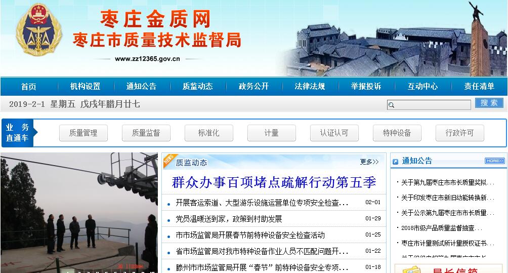 枣庄市质量技术监督局主要职责:(一)贯彻执行质量技术监督工作的法律法规和方针政策,负责全市质量技术监督工作;按照法律法规赋予的行政许可权限和省质量技术监督局委托的行政许可事项,组织开展行政许可工作;组织依法查处违反质量技术监督法律法规的行为。(二)负责全市质量管理工作。组织实施质量发展规划,负责全市产品质量诚信体系建设工作;推进质量强市战略和品牌发展战略;组织实施质量奖励制度;推行 质量责任制度;监督管理产品防伪工作;协调开展重大工程设备质量监理工作;组织开展较大产品质量事故调查;实施缺陷产品召回制度。(三)负责全市产品质量安全监督工作。承担生产环节食品相关产品质量安全监督管理工作;按规定权限参与食品安全事故调查处理;负责工业产品(含食品相关 产品)生产许可证管理和纤维质量监督检验工作;组织实施产品质量监督检查、风险监控工作、监督抽查工作;负责纤维质量监督管理工作;监督管理产品质量安全 仲裁检验、鉴定;组织开展产品质量安全专项整治工作,依法查处产品质量违法行为,按分工打击假冒伪劣活动;根据市政府授权,组织协调全市有关专项打假活 动;组织重大产品质量事故调查。(四)负责统一管理全市标准化工作。组织国家标准、行业标准和地方标准的贯彻实施;组织制定农业地方规范;对标准的实施进行监督;组织实施标准创新奖励 制度;推行采用国际标准和国外先进标准;指导团体标准建设;依法管理企业标准化工作;负责全市统一社会信用代码数据库和商品条码管理工作。(五)负责统一管理全市计量工作。推行法定计量单位和国家计量制度,依法管理计量器具和强制检定工作,组织量值传递;组织仲裁检定;指导工业计量工作;负责规范和监督商品量与市场计量行为;监督管理计量检定机构和检定人员的资质资格。(六)负责统一管理全市认证认可工作。依法开展资质认证实验室的监督工作;依法监督强制性产品认证和自愿性认证工作;根据授权对认证活动实施监督管理;会同有关部门推进检验检测认证体系建设。(七)负责综合管理特种设备安全监察、监督工作;按规定权限组织或参与特种设备安全事故的调查处理;监督检查高耗能特种设备节能标准的执行情况;会同有关部门对锅炉生产、进口、销售和使用环节执行环境保护标准或者要求的情况进行监督检查。(八)制定并组织实施全市质量技术监督科技发展规划;组织重大科研攻关和重大技术引进工作;组织开展质量技术监督有关对外业务交流与合作。(九)承担市质量强市及品牌战略推进工作领导小组日常工作。(十)负责协助管理各区(市)市场监管部门领导干部。(十一)承办市委、市政府和省质量技术监督局交办的其他事项。