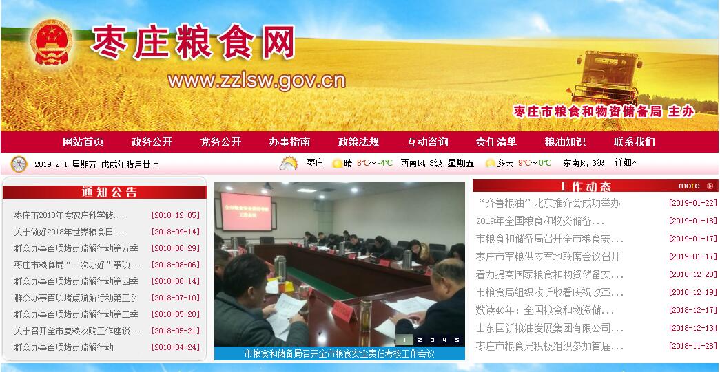 枣庄市粮食局是枣庄市人民政府主管全市粮食工作的工作机构。其主要职能是:(一)负责贯彻落实国家、省关于粮食工作的方针政策和法律法规;研究拟定全市粮食流通和粮油储备的政策规定并组织实施。(二)负责贯彻落实《粮食流通管理条例》,依法对全社会粮食流通工作监督检查;负责培育和发展粮油市场,指导全市粮油市场建设和管理;承办粮食收购准入资格的审查认定和粮食行政复议工作;会同有关部门依法管理粮食市场,维护正常的粮食流通秩序。(三)组织指导全市粮食宏观调控和总量平衡;负责粮食余缺和品种调剂,平抑粮油市场价格,以及编制粮食储备的中长期规划和年度计划;负责全社会粮食流通调查统计工作。(四)认真落实国家粮食收购质价政策,抓好粮食收购工作;组织实施小麦托市收购及参与小麦竞价拍卖工作,切实保护种粮农民利益;负责全市粮食收购资金的协调和落实。(五)指导协调全市粮食、食用油储备体系建设;负责市级储备粮油的管理和区(市)储备粮油的监管,组织实施市级储备粮油的收购、储存、调运和轮换工作;负责全市军队粮油供应工作。(六)负责监测和预警粮食市场供求形势,组织实施粮食安全应急保障预案。指导、协调产销区之间建立稳定的粮食购销协作关系。(七)研究制定并组织实施粮食产业发展规划;指导协调粮食流通体制改革和全市国有粮食企业改革工作。(八)指导、监督全市粮食财务管理工作;协助有关部门管理使用粮食风险基金;指导协调全市粮食系统经营管理、经济效益考评以及扭亏增盈工作;组织并实施对直属单位经济效益审计以及直属单位国有资产的监督管理。(九)负责组织粮食系统科技成果鉴定和推广;组织实施粮食储存、运输技术规范;指导监督行业储粮安全和安全生产工作。