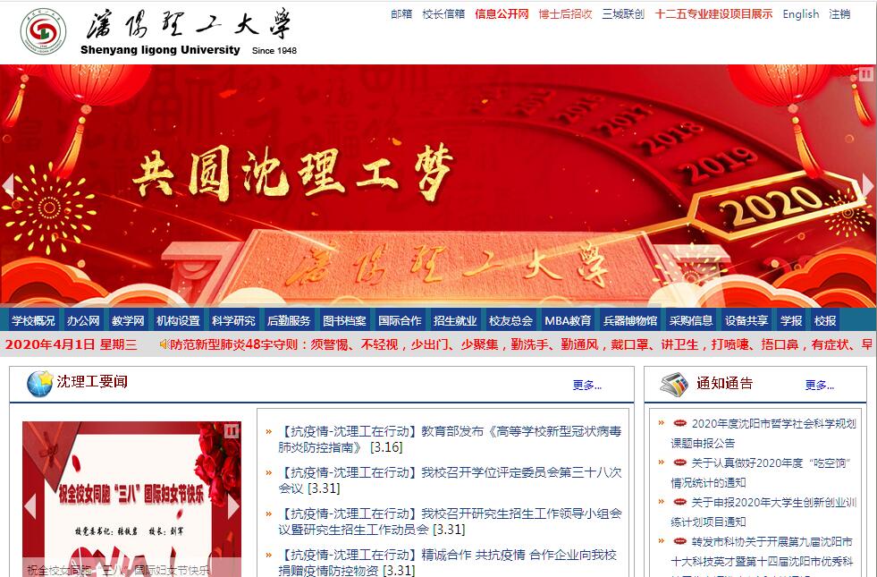 沈阳理工大学前身是东北军区军工部工业专门学校,创建于1948年。1960年组建成立沈阳工业学院,2004年经教育部批准更名为沈阳理工大学。2010年辽宁省人民政府与中国兵器装备集团、中国兵器工业集团签署了共建沈阳理工大学协议。2016年获批“国家国防科技工业局与辽宁省人民政府共建高校”,成为省局共建的国防特色院校。经过七十年的建设和发展,沈阳理工大学已由一所学科单一的军工院校发展成为以工为主,理、经、管、文、法、艺相结合,服务辽宁、面向全国,具有鲜明国防特色的多科性大学。是教育部批准的招收高水平足球运动队的高等院校之一。学校占地面积113万平方米,校舍建筑面积44.4万平方米。校园内建有局域网,图书馆面积4万平方米,纸质藏书137.52万册,图书总量242.52万册。学生文化体育设施齐全,建有标准运动场和大学生文体中心,为学生全面发展提供了良好条件。学校建有东北地区唯一的兵器博物馆,是国家和辽宁省科普教育基地、辽宁省国防教育基地及沈阳市爱国主义教育基地。学校设有19个学院(教学部),设有54个本科专业,分布在工、理、经、管、文、法、艺术等7个学科门类。拥有国家级特色专业建设点2个,国家级专业综合改革试点专业1个,省级特色(示范)专业、改革试点专业及重点支持专业17个。有6个省级教学团队,教育部精品视频公开课1门,省级精品课程13门,省级视频公开课和精品资源共享课14门。2007年,学校以“优秀”成绩通过教育部高等学校本科教学工作水平评估。2011年,学校被教育部批准为国家卓越工程师教育培养计划试点高校。有国家级大学生校外实践教育基地建设项目1个,省级大学生实践教育基地、实验教学示范中心、工程实践教育中心等17个。现有教职工1694人,其中双聘院士1人,博士、硕士研究生导师398人,高级职称专任教师546人。国家“百千万人才工程”百人层次、国家级教学名师、享受国务院政府特殊津贴、教育部“新世纪优秀人才”13人。省领军人才、省优秀专家、省特聘教授、省教学名师、省高校优秀科技人才支持计划、省高校杰出青年学者成长计划、省“百千万人才工程”百人层次70人,辽宁省创新团队4个。现有各类全日制在校生17424人,其中本科生15811人,博士、硕士研究生1315人。有博士人才培养项目1个,博士后科研流动站1个,博士后科研工作站1个;有12个硕士学位授权一级学科,涵盖45个二级学科(学科方向);有8个工程硕士授权领域和4个专业学位授权点。拥有国家级沈阳中俄科技合作基地、国家863高技术发展计划重点实验室和1个省级高校重大科技平台。有5个国家级国防特色学科,5个省级重点学科,4个省级优势特色学科和培育学科,24个省、部级重点实验室和工程技术研究中心。“十二五”以来,学校共承担科研项目2103项,其中纵向项目737项,横向项目1366项,科研到款2.5亿元。获批国家自然科学基金项目、科技部科技支撑计划、中央军委装备发展部、国家国防科工局等国家级项目105项。获批省级奖项31项。获得授权专利749项,发表三大检索论文1277篇。学校承担省部级以上教学改革项目116项,获省级教学成果奖18项。学校与美国、俄罗斯、英国、加拿大、德国、法国、芬兰等18个国家的80所高校及科研院所建立了友好合作关系,开展了不同程度的交流与合作。与波兰西里西亚技术大学开展化学工程与工艺专业的中外合作办学项目获批教育部本科合作办学项目。与俄罗斯和白俄罗斯国家科学院所属的9个研究所共建了4个设备技术先进的合作实验室。与英国、美国、加拿大、俄罗斯、法国等国家的大学开展2+1+1,2+2以及3+1等不同模式的本科生及硕士生联合办学项目。学校是中国政府奖学金来华留学生招收院校,2015年以来,招收留学生1685人,政府奖学金本科生58人,硕士生274人。学校与俄罗斯托木斯克国立大学合作建立了孔子学院,并于2015年度获得“全球先进孔子学院”荣誉。学校始终坚持“育人为本、改革创新、强化特色、提高质量”的工作方针,全面实施“特色立校、人才强校、开放兴校”三大战略和“教学质量工程、科技创新工程、学科提升工程、师资队伍建设工程、管理体制改革工程”五大工程。弘扬“爱国奉献、自强不息、求真务实、追求卓越”的兵工精神,秉承“弘志励学,德才并蓄”的校训,以人才培养为根本任务,走内涵式发展道路,不断深化教育教学改革,努力把学校建设成为具有鲜明国防特色的研究应用型大学。