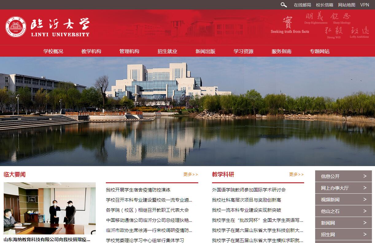 临沂大学是国家设立、山东省政府直属管理的综合性大学,“山东省应用型人才培养特色名校工程”重点建设大学。学校坐落在风景秀美、人文荟萃的历史文化名城、商贸物流之都、滨水生态之城、红色旅游城市、全国文明城市山东省临沂市。前身是1941年由中共滨海区委和抗大一分校共同创建的滨海建国学院。在77年的办学历程中,学校始终秉承“实”的校风和“明义、锐思、弘毅、致远”的校训,不断解放思想,开拓创新,实现了超常规跨越式发展。学校现设有24个学院、2个分校区,本科专业88个,涵盖文学、理学、工学、艺术学、教育学、法学、经济学等11大学科门类。2018年,经过国家学位办审核通过,学校成为硕士学位授予单位,化学、教育硕士、工程硕士为审核通过的硕士学位授权点。学校面向全国招生,现有全日制在校生40285人,专任教师2232人,其中教授、副教授855人,博士、硕士师资1732人。学校以“全国知名、区域特色鲜明的创新创业型大学”为奋斗目标。聚力定位塑校,确立科学发展愿景;聚力教学立校,创新人才培养机制;聚力科研强校,提升自主创新能力;聚力服务荣校,实现校地互动发展;聚力人才兴校,提升师资队伍水平;聚力开放亮校,努力拓展国际视野;聚力文化铸校,彰显特色办学精神;聚力改革活校,强化体制机制保障。努力培养“基础理论扎实,富有创新精神和创业能力,具有沂蒙精神特质和国际视野的高素质应用型人才”。学校校园由美国EDSA公司融合了美国斯坦福大学校园规划理念设计而成,校园环境优雅,学术底蕴浓厚。学校校舍面积113万平方米,其中图书馆、实验中心、艺术中心、体育中心是目前国内高校建筑面积最大的楼体之一。学校教学科研仪器设备总值3.5亿多元,馆藏纸质图书450余万册,电子图书220余万册,电子期刊1.7余万种,建成了国内较为先进的数字化校园系统。学校与美国、英国、俄罗斯、韩国、日本、法国、印度等19个国家的56所高校建立了友好合作关系,建有中韩学院、世宗学堂、中印软件学院等国际合作办学平台,中外合作本专科专业6个。学校设立的汉学、中国武术、中国民族乐器、中国画、中国书法、国际经济与贸易、翻译学、艺术设计、工商管理、新闻学等专业招收国外留学生。