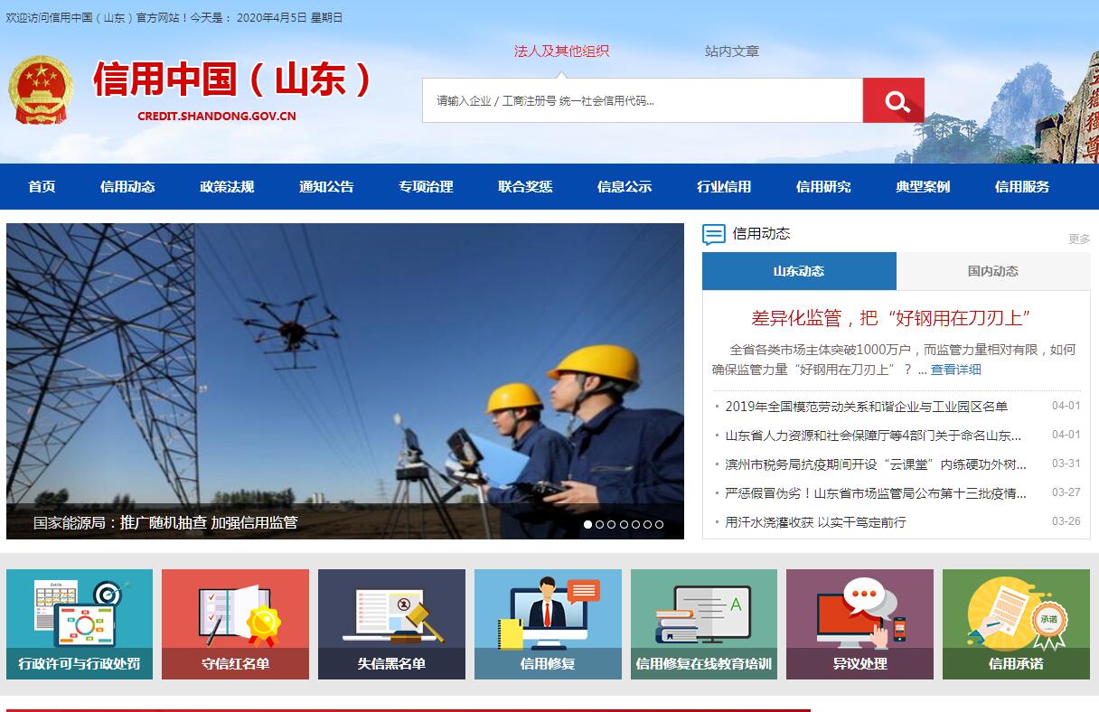 | 网站简介: “信用中国(山东)”官方网站是“信用中国”官方网站的重要组成部分,是山东省开展社会信用体系建设的唯一官方网站。既是展现我省信用建设成果的窗口,更是面向社会提供信用服务的名片,还肩负着弘扬诚信精神的使命。网站分为WEB版和手机版。网站由山东省发展和改革委员会主办,山东省信息中心承办,并由浪潮软件集团有限公司提供技术支持及运维。 |
