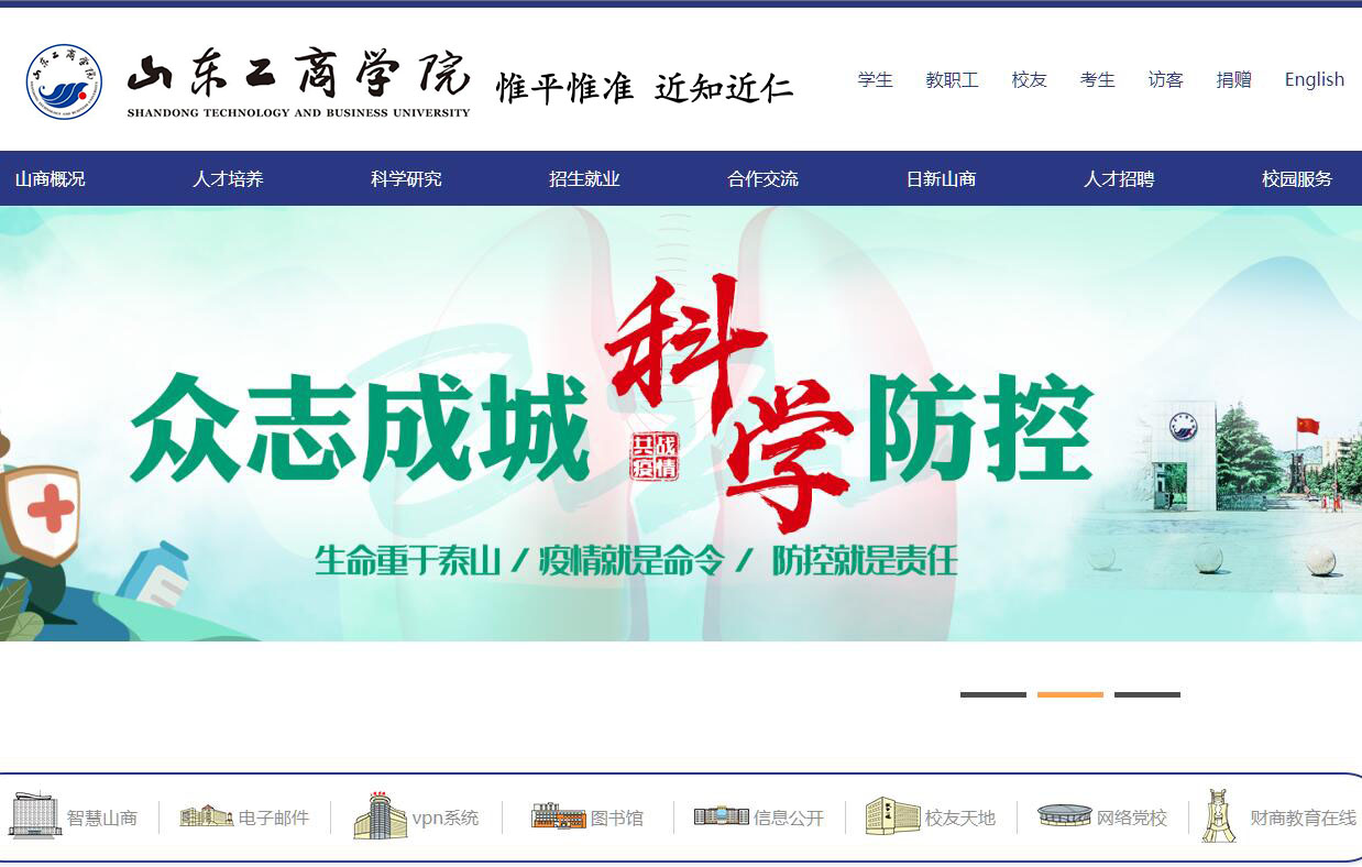 山东工商学院原名中国煤炭经济学院,始建于1985年,隶属于原煤炭工业部。1998年9月,因管理体制改革转为中央与山东省共建,以山东省管理为主,2003年2月更为现名。学校坐落在“最佳中国魅力城市”——烟台,依山傍海,风景秀丽,是省级花园式单位和文明校园,是山东省应用型人才培养特色名校立项建设单位、山东省首家获批的团中央“第二课堂成绩单”制度试点单位。学校占地90.9万平方米,建筑面积56.5万平方米,图书馆馆藏文献266.24万册。学校在33年的办学实践中,铸就了“惟平惟准、近知近仁”校训,已发展成为以经济学、管理学为主,理学、工学、文学、法学等多学科协调发展,本科生教育、研究生教育、继续教育和留学生教育多层次办学格局的财经类高校。现有17个二级院(部)、6个研究院、36个研究所(中心),全日制在校本专科生、研究生20568人。教职工1191人,其中专任教师803人,教授123人,博士358人。国务院特殊津贴专家5人,全国优秀教师6人,山东省有突出贡献的中青年专家6人,教育部新世纪优秀人才2人,山东省教学名师、山东高校十大优秀教师等20余人。学校坚持“学科引领、特色带动、重点突破、绩效考评、动态管理”原则,推动形成核心学科优势突出、支撑学科特色鲜明、基础学科健全扎实、新兴学科和交叉学科创新发展的良好学科生态。现有管理科学与工程、工商管理、应用经济学、计算机科学与技术、公共管理5个一级学科硕士学位授权点和会计、工程(电子通信与工程领域)、金融、应用统计4个专业学位授权类别,是博士学位授予培育建设单位。“十三五”期间,工商管理、计算机科学与技术入选山东省高水平应用型重点立项建设专业(群),劳动与社会保障、工业工程入选山东省高水平应用型培育建设专业(群)。管理科学与工程、企业管理、产业经济学、计算机应用技术、会计学、统计学、宪法学与行政法学等7个山东省重点学科。学校坚持立德树人,深化教育教学改革,聚焦培养具有必要的历史知识、健康的身心素质、较强的创新能力、宽广的国际视野的高素质应用型人才。现有59个本科专业,其中国家级特色专业2个、教育部地方高校本科专业综合改革试点专业1个、省级特色专业9个、山东省普通本科高校应用型人才培养专业发展支持计划立项建设专业2个、山东省卓越工程师教育培养计划立项建设专业3个、中国大学四星级专业1个。现有国家级精品课程1门,国家级双语教学示范课程1门,省级精品课程49门,省级教学团队7个,国家教学成果二等奖1项,省级教学成果奖42项,“省级实验教学示范中心”1个,“省级人才培养模式创新试验区”1个。校外教学与就业实习基地200余家,近三年毕业生就业率保持在95%以上。学校坚持协同创新,全面对接国家战略、区域经济和行业产业需求,服务山东省新旧动能转换重大工程。现有“山东能源经济协同创新中心”和“未来智能计算协同创新中心”2个山东省协同创新中心,“智能信息处理实验室”“系统安全与管理实验室”“公共管理创新及仿真实验室”“感知技术与控制实验室”“煤炭产业发展与创新研究基地”和“山东半岛经济与社会研究中心”6个山东省高等学校科研创新平台,1个山东省示范工程技术研究中心“车联网工程技术研究中心”,烟台经济社会发展研究院、煤炭经济研究院、半岛经济研究院、东亚社会发展研究院、金融研究院和儒商研究院6个研究院,“社会稳定风险研究评估中心”“社情民意调查中心”“地方立法与政府法治研究服务中心”和“中国社会保障管理服务中心”4个新型智库。学校坚持全方位开放合作,立足烟台、服务山东、面向全国,推进校城融合、产教融合,推进教育国际化,设有教育部批准的山东省最早的本科中外合作办学机构——国际商学院,先后与美国、英国、韩国等20多个国家的50多所高校建立了友好关系,加强与港澳台高校沟通交流,在学生培养、教师互派、学术交流等方面开展合作。学校先后获得“全国模范职工之家”“全国大学生心理健康教育工作先进单位”“山东省文明单位”“山东省高校德育工作优秀高校”“烟台发展突出贡献单位”“烟台市文明单位”等荣誉称号。面对新时代高等教育发展的新方位,第三次党代会以来,学校坚持以习近平新时代中国特色社会主义思想为指导,积极贯彻落实党的十九大精神,坚持新发展理念,坚持走以质量提升为核心、以特色凝聚为重点、以开放合作为突破、以改革创新为驱动的内涵式发展道路,正在为建设有特色开放式高水平财经类大学而努力奋斗。
