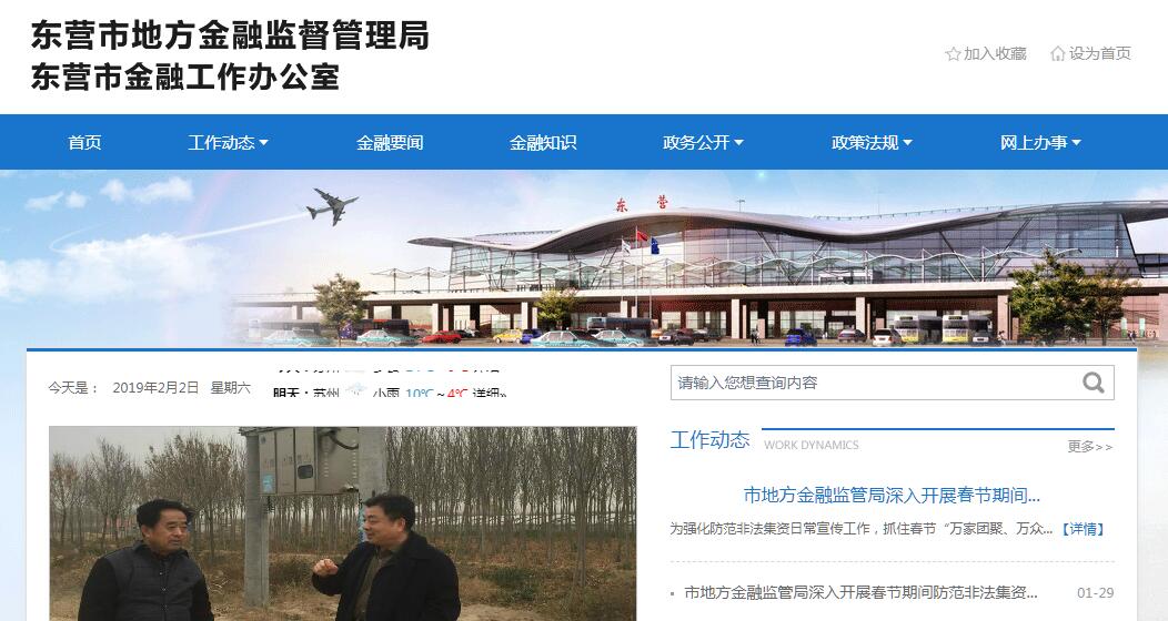 东营市人民政府金融工作办公室(东营市地方金融监督管理局)主要职责:(一)贯彻执行国家有关金融工作方针政策和法律法规,落实省、市政府关于金融方面的工作部署,依法制定地方金融监管规则和办法;拟定全市金融业发展规划和政策;研究分析金融形势、国家金融政策和全市金融运行情况,提出改善金融发展环境、促进金融业发展的建议。(二)会同有关部门拟订黄河三角洲高效生态经济区、山东半岛蓝色经济区金融改革与创新政策、措施并组织实施。(三)负责联系、协调驻市各类金融机构,做好相关服务工作;配合中央驻省、市金融监管机构做好银行、保险、证券、期货、信托、财务公司等金融机构的监管工作;深化银企合作,鼓励引导金融机构为地方经济社会发展提供金融服务。(四)拟订全市多层次资本市场发展规划与政策措施并组织实施;协调推动企业境内外上市(挂牌)工作,协调、配合证券监管机构做好境内外上市(挂牌)企业的规范发展工作;指导推动债券市场融资工作。(五)牵头推进地方法人金融机构的改革与发展工作,指导推进农村金融机构改革发展;督导地方法人金融机构完善法人治理结构和内控机制建设,配合中央驻鲁、驻市金融监管部门对地方法人金融机构进行监督管理;牵头地方法人金融机构的改制重组。(六)依照权限审核审批新型金融组织和交易场所的设立、变更、终止及业务范围,并进行监督管理;依照权限对新型金融组织、交易场所的董事、监事和高管人员实行任职资格管理,开展从业人员资格认定;对新型金融组织、交易场所的业务情况及其风险状况进行现场检查和非现场监管,组织开展年审和分类评级,建立监管信息系统;负责全市小额贷款公司、融资性担保公司设立的审核报批和监督管理;对新型金融组织、交易场所的自律组织进行指导和管理。(七)会同有关部门建立完善地方金融风险预警处置机制,防范化解和处置地方金融风险,维护地方金融稳定;协调组织地方金融统计监测、专项调查等;协调有关部门依法查处非法集资和非法证券活动等非法金融活动。(八)配合开展金融人才培训和引进工作。参与拟订引进各类金融机构和金融人才的政策,指导金融管理人才的培训和交流工作。(九)承办市委、市政府交办的其他事项。
