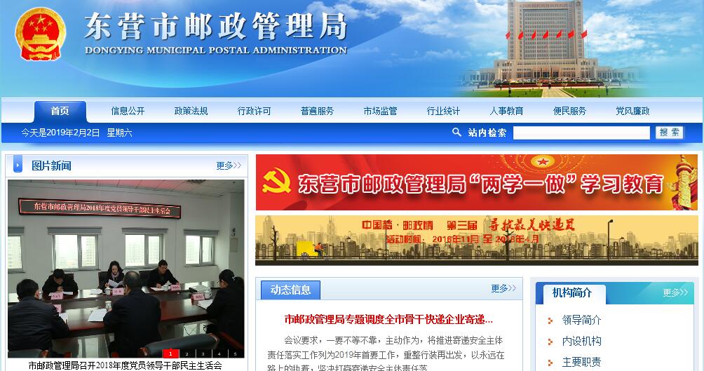 | 网站简介: 东营市邮政管理局主要职责:(一)贯彻执行国家邮政法律法规、方针政策和邮政服务标准。(二)研究拟订本地区邮政发展规划。(三)监督管理本地区邮政市场以及邮政普遍服务和机要通信等特殊服务的实施。(四)负责行业安全生产监管、统计等工作。(五)保障邮政通信与信息安全。(六)承办上级邮政管理部门及地方人民政府交办的其他事项。 |