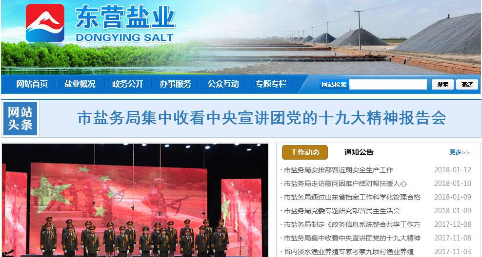 东营市盐务局是东营市人民政府盐业行政主管部门,正处级建制事业单位,负责本行政区域内的盐业行业管理、盐政执法和食盐专营的行政管理工作。其主要职责:(一)贯彻执行国家和省有关盐业的法律、法规和政策;研究制定本市盐业管理规范性文件和提出本市盐业法规草案,经立法程序批准后组织实施。(二)研究制定全市盐业的行业发展规划,向省盐业主管部门提报年度计划,并对执行情况进行督促检查;制定盐业产业政策;负责制盐许可证的审查、申报工作;依法加强盐资源的保护、开发和利用,做好行业产业结构优化调整和资源综合开发利用。(三)负责全市盐政管理工作,对全市的盐政执法实行统一领导,分级管理并实施监督检查;依法监督盐的生产、流通和市场,查处涉盐违法案件;协助税务部门,做好盐业缉私护税工作;受理盐业行政复议案件;培训、管理盐政执法人员;提供盐业法律咨询服务。(四)负责管理全市食盐专营工作,全面落实国家食盐专营政策;负责食盐生产、批发许可证的审查、申报和零售许可证、运输准运证的审批核发工作;制定下达全市食盐、小工业盐的调拨计划,组织盐产品的调配、供应;配合做好食盐市场的管理工作。(五)承担盐业行业的综合统计和分析工作;综合分析全市盐业经济运行情况和发展趋势,协调解决生产建设中的重大问题;培育和完善盐业市场体系;组织收集、整理、发布市内外行业经济、技术、市场信息,预测市场发展趋势,为行业生产经营服务,为有关部门决策提供依据。(六)承担食盐应急责任,负责全市食盐安全工作,修编市食盐保障应急预案并组织实施;负责全市食盐储备管理。(七)加强全市碘盐产供销各环节的管理,协调组织有关部门开展对碘盐市场的监管活动,配合有关部门开展碘缺乏病的预防和防治工作。(八)负责调查研究国内外盐业科技发展趋势,制定行业科技进步规划,负责重大科研项目、实验项目、新产品和新技术开发的组织实施工作,搞好科研成果的推广和应用。(九)指导、协调全市盐业的基本建设和技术改造工作;会同有关部门,对行业的重大项目进行组织论证、审查、转报,并负责实施过程中的管理工作。(十)依法对盐业产品质量和生产规范实行监督管理,协同有关部门对盐产品的质量、标准、计量、节能、设备、安全生产、工业卫生、环境保护等进行监督检查;负责工业盐监督管理;负责提出行业生产工人技术标准和行业劳动工资等政策建议。(十一)负责制定全市盐业人才发展规划,协调指导行业职工教育培训工作。(十二)指导全市盐业的精神文明建设和企业管理,指导盐业协会、学会、研究会的工作。(十三)承办市委、市政府交办的其他工作。