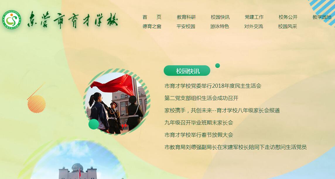 东营市育才学校始建于1998年,是一所隶属于市教育局管理的九年一贯制义务教育学校。占地面积88330平方米,建筑面积40300平方米。现有78个教学班,在校学生3296人(市直机关工作人员子女占3.68%、公司企业职工子女占21.37%、外来务工子女、个体经营人员和周边农村子女占74.95%)。正式在编教职工217人,专任教师208人,具有中高级职称的教师113人。目前,学校有齐鲁名师、省特级教师、省教学能手9人,市级教学名师42人,市级以上优秀教师、优秀班主任13人。在市委市政府的领导下,在市教育局的直接指导下,近年来,育才学校按照“尊重差异,发展个性”的办学理念,为实现学校确定的“十二五”发展规划和打造“差异教育品牌学校”的奋斗目标,通过实施机构改革、制度重建、作风整顿、读书研训、名师培养、课程课堂改革、体育专项改革、小组互助学习、增量评价、选课走班实验、海量阅读、家长志愿者、游泳特色创建等一系列改革举措,构建起了差异教育的教师发展、课程建设、自主课堂、爱责教育、多元评价、家校合作六大体系,各项改革取得了明显成效,教育教学质量明显提升,办学特色更加鲜明,社会满意率大幅提高。教体结合的游泳模式日渐成熟,游泳品牌进一步凸显。截至目前,我校游泳队员在省级以上比赛中共获得117枚金牌、134枚银牌、163枚铜牌,培养出了国家健将运动员1人、国家一级运动员24人、国家二级运动员54人,10名运动员被选拔到山东省游泳运动队和黑龙江游泳运动队,9人被输送到中国地质大学、西安交大、清华大学等高等院校。2014年7月28日,由我校游泳运动队为主组建的省中学生游泳队参加了中华人民共和国第十二届学生运动会,实现了我市游泳学生参加全国性运动会的历史性突破。在《人民教育》《中小学管理》等刊物发表479篇科研论文,358篇论文在市级以上评选中获奖,近100人次在国家和省市优质课中获奖,完成了35项国家和省市重点课题、规划课题的研究和实验,另有9项省市课题正处于研究阶段。学生在各级各类比赛中获奖超过2000人次,在市级以上报刊发表文章300多篇。学校先后荣获“全国特色学校”“全国初中教育质量建设先进单位”“全国100所国家级体育传统项目学校”“省规范化学校”“省教学示范学校”“省依法治校示范学校”“省艺术教育示范学校”“市级文明单位”等多项荣誉,中央电视台、山东卫视、《人民日报》、《人民教育》、《中国教育报》、《大众日报》等多家媒体都对学校的办学成果做过报道,现在育才学校已逐渐成为省内外有一定知名度的差异教育品牌学校和全国有一定知名度的游泳特色学校。先后6次为市、省和全国的教育研讨会提供参观现场,有省内各地市和全国22个省市、自治区的几千名教育同行到校参观学习。