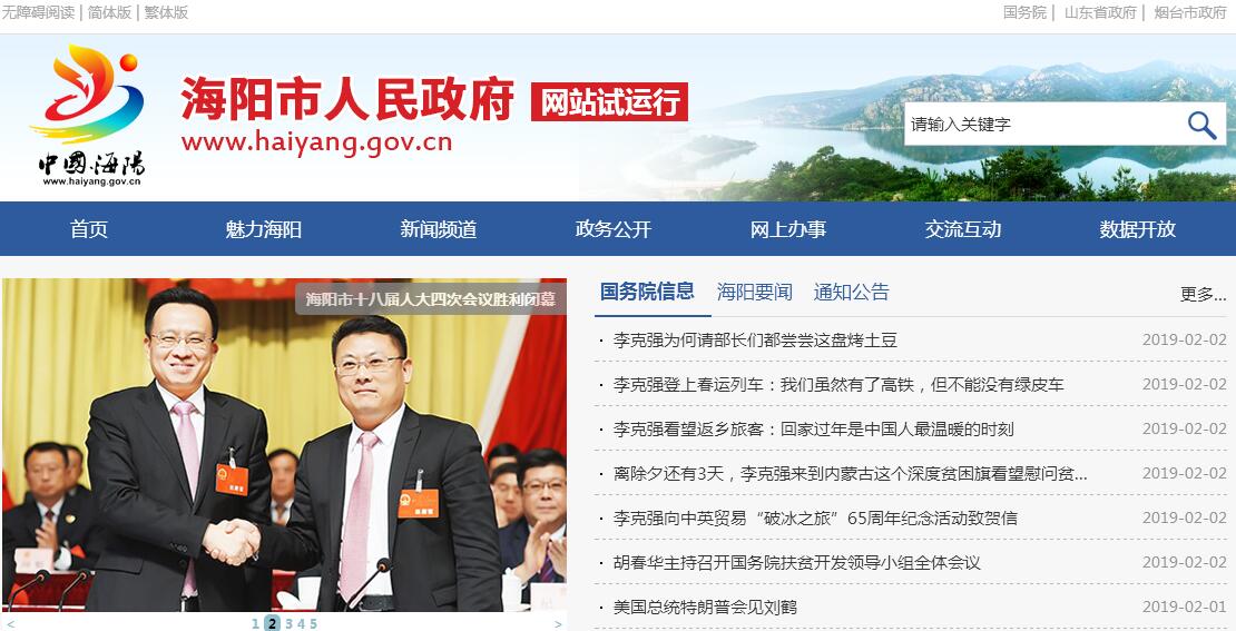 海阳市位于胶东半岛南端,因地处黄海之阳而得名。总面积1886平方公里,海岸线长230公里,户籍人口65.8万,辖18个镇街区,其中包括1个国家级旅游度假区、1个省级经济开发区和1个省级核电装备制造工业园区,732个行政村。先后被评为中国优秀旅游城市、国家园林城市、中国最美旅游休闲度假目的地、“美丽中国”十佳旅游县(区)、山东省文明城市、平安山东建设先进县、山东省文化强省建设先进县。2016年,实现GDP302.6亿元、增长8.5%,公共财政预算收入29.4亿元、增长14.6%,固定资产投资442.7亿元、增长14.1%;实际到账外资5.09亿美元、增长11.9%,外贸进出口64.4亿美元、增长6.7%,各项主要经济指标均位居烟台中上游水平。今年一季度,实现GDP65.4亿元、增长8.9%,一般公共预算收入7.54亿元、增长9.1%,固定资产投资59.2亿元、增长13.6%,实际利用外资4600万美元、增长27.4%。海阳是一座奋进争先之城。这里,人民群众勤劳智慧、善良朴实,党员干部踏实肯干、务实甘为,对海阳发展饱含热情、充满期待。海阳市委、市政府坚持高境界宽视野谋划海阳发展,着眼经济发展新常态,聚焦新旧动能转换,以践行“五大发展理念”为路径,科学谋划了着力实现综合实力跨入烟台“第一方阵”、跨入全省县级上游水平“两大跨越”,培强做大核电临港、旅游度假、毛衫针织、汽车产业“四大特色产业集群”,聚力突破核电站、海阳港、海阳至青岛城轨和海阳至莱西高铁“四大重点工程”,精心实施富庶海阳、智慧海阳、魅力海阳、开放海阳、和谐海阳“五大建设”这“二四四五”的发展目标及蓝图,动员全市上下走在前列担当新使命,决战五载矢志新跨越,努力为烟台率先走在全省前列多担责任、多做贡献。海阳是一座滨海旅游之城。这里依山傍海、水秀峰奇,拥有以沙细坡缓水清著称的万米海滩、国内规模最大的沙雕艺术公园、招虎山国家级森林公园、中国北方最大的竹林——云顶竹林等旅游资源。依托独特的滨海旅游资源,精心打造“海洋休闲度假、山地生态养生、城市商务游憩、历史民俗体验”四大板块,2012年,成功举办了第三届亚洲沙滩运动会,连续举办了三届攀岩世界杯、六届国际沙滩体育艺术节;2015年,成功举办了2015中国旅游产业电子商务发展论坛、2015第一届海阳国际编织文化节暨沙滩嘉年华等系列高层次旅游会展活动;2016年9月10日,成功举办了2016山东省首届仙境海岸海阳国际马拉松,同时积极与联合国开发计划署等国际会议平台各合作方建立“3+2”的5年会议发展合作模式,9月25日至27日,成功举办了2016“一带一路”大使(海阳)论坛,会展经济在海阳蔚然兴起,海阳的国内国际知名度和影响力进一步提升,并成功入选“2016中国避暑休闲十佳县榜”,成为独具特色的度假休闲旅游目的地城市,叫响了“南有三亚、北有海阳”旅游品牌。其中,海阳旅游度假区被列为“国家级海洋特别保护区”,命名为全国首个“国家级沙滩体育健身基地”,2015年10月9日成功入选首批“国家级旅游度假区”。海阳是一座产业崛起之城。新常态下,海阳更加注重发展的质量和效益,更加注重培育特色鲜明的产业体系,突出抓好核电临港、旅游度假、毛衫针织和汽车产业“四大产业”。目前依托核电站、海阳港已经引进建设核电临港产业项目20多个,全国涉核四大央企有三大央企在海阳有投资项目,核电产业研发、加工、运营、服务一体化、全链条式发展格局日益成型;纵深推进“旅游兴市”战略,按照全省蓝色经济区九大核心区之一的丁字湾亚沙文化旅游产业集聚区的功能定位,对滨海岸线进行了科学长远规划,先后引进了碧桂园、连理岛、海立方欢乐水世界、伟光汇通文化古镇、东方海洋极地世界、国家板球及省小球训练基地等一批总投资逾千亿元的旅游度假休闲文化产业项目,原生态黄金岸线及度假酒店群资源得到进一步整合,山海一体、水陆联动的集群化旅游发展格局基本形成;海阳毛衫是全国五大毛衫加工基地之一,被誉为“全国毛衫名城”,正在致力打造的毛衫产业全链条专业化服务平台——海阳毛衫创新园以及政府主导设立的“双创”平台,为产业转型创新、多业态融合发展提供了坚实支撑;依托一汽大众华东生产基地、北汽新能源汽车莱西生产基地和比亚迪城阳生产基地,抢抓机遇发展汽车产业,与河北建设集团合作采用PPP模式启动汽车产业全链条式智慧园区建设,园区已于今年3月开工建设,目前已有投资逾百亿元的汽车产业项目达成初步意向,汽车产业“无中生有”,加速隆起。海阳是一座设施完善之城。作为胶东半岛重要节点城市,海阳的重大基础设施战略性支撑稳固。目前省内单体投资规模最大的海阳核电站,总投资逾1200亿元,总装机量800多万千瓦时,1号机组将于2017年发电,2号机组与1号机组保持10个月的工期间隔;3、4号机组“两评报告”已经获批,项目申请报告已上报国家发改委,现场具备开工条件,即将获准开工。2014年8月,海阳港获批一类开放口岸,现已确定了新的投资主体——中港建设集团,近期将全面复工建设东港区防波堤和5万吨级码头工程,建成后货物吞吐量将突破千万吨级。青岛至海阳轨道交通和莱西至海阳高铁两条对于海阳具有“里程碑”式重要意义的铁路,正在积极对接、全力促进,力争早日落实启动,建成后不仅能为海阳接受青岛“带状”和“点状”辐射提供