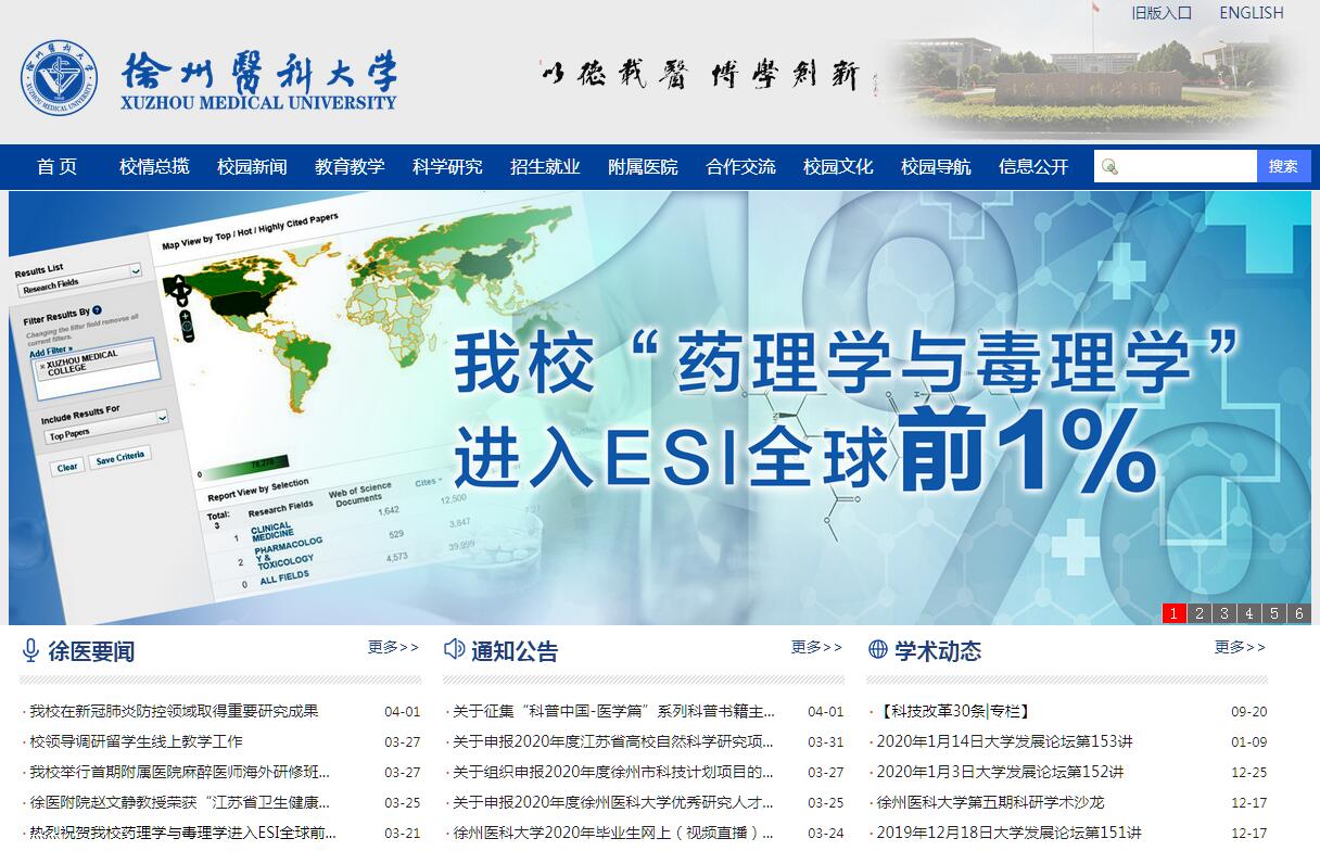 徐州医科大学的历史最早可追溯至创办于1934年的江苏省立医政学院,1958年由南京医学院分迁至徐州成立南京医学院徐州分院,1960年定名为徐州医学院,2016年更名为徐州医科大学。六十年来,学校不断发扬“艰苦创业、不断创新、勇于创优”的优良传统,大力实施“人才强校、质量立校、科技兴校、特色名校、文化铸校”的发展战略,坚持“创新型发展”“选择性优秀”“关联性拉动”的发展思路,走出了一条极具特色的发展之路,是整个淮海经济区办学历史悠久、办学特色鲜明的一所高等医学院校,也是该地区医学教育、医学科研和医疗服务的中心。学校占地约1100亩,有3个校区,设18个院系、16所附属医院,有全日制在校生约14000人, 教职工1300余人。设置27个本科专业,涵盖医、理、工、管4个学科门类。有临床医学、生物学2个博士学位授权一级学科,临床医学、基础医学、生物学、生物医学工程、药学、公共卫生与预防医学、医学技术7个硕士学位授权一级学科和临床医学、口腔医学、药学、公共卫生、护理5个专业学位授权点,具备硕士研究生推免权,并设有博士后科研流动站和工作站。形成了从本科生、研究生到博士后,从全日制到成人教育、留学生教育全方位、多层次的教育体系。学校坚持以教学工作为中心,深化教学改革,规范教学管理,教学质量不断提高,通过教育部本科教学工作审核评估。拥有国家级特色专业建设点、国家级规划教材、国家级人才培养模式创新实验区、国家级实验教学示范中心和国家级教学团队,是国家第一批临床医学硕士专业学位研究生培养模式改革试点高校;通过教育部临床医学专业认证,认证有效期7年;获国家级教学成果一等奖、二等奖各1项,以及省级教学成果特等奖等一批省部级奖项;获国家级“卓越医生教育培养计划”项目和中央财政支持地方高校发展专项资金建设项目多项,以及一批省级品牌专业、重点专业(类)、精品课程和教材、实验教学示范中心和实践教育中心。学校高度重视学科建设和科研工作,建有一批省级重点学科和省优势学科群,其中临床医学学科ESI排名全球前1%;获得国家地方联合工程实验室、省协同创新中心、省级重点实验室、省级工程技术研究中心等一批科研平台。近五年,学校承担各级各类科研项目1000余项,其中国家自然科学基金项目200余项;发表SCI、EI等收录论文近千篇,其中在美国科学院刊等高水平期刊发表论文多篇;获得国家科技进步奖、国家自然科学奖等省部级以上科研成果奖励20余项。学校不断加大师资队伍建设力度,加快高层次优秀人才的培养和引进,师资队伍数量稳步增长、结构持续优化。有长江学者特聘教授、国家百千万人才工程、全国优秀教师、教育部“新世纪优秀人才支持计划”、全国卫生系统先进工作者、享受政府特殊津贴专家,以及江苏特聘教授、江苏省教学名师、江苏省优秀教育工作者、江苏省“双创计划”、江苏省科技创新团队、江苏省“333工程”、“六大人才高峰”、“青蓝工程”等一批优秀教师和团队。近年来,学校不断加强对外交流与合作,先后与美国哈佛大学、塔夫茨大学、新加坡国立大学、澳大利亚卧龙岗大学、韩国延世大学、英国伦敦大学等30多所海外知名高校、科研院所建立校际合作关系,在美国北卡罗来纳大学教堂山分校、韩国乙支大学等高校建立师资培训基地。此外,学校还多次主办(承办)国际学术会议,学校的国际影响力进一步扩大。麻醉学教育是学校的特色和优势。学校在全国率先创设麻醉学本科专业,并建成为全国“高等学校特色专业”,麻醉学教学团队是“国家级优秀教学团队”,麻醉学教学成果荣获国家级教学成果一等奖、二等奖。麻醉学学科先后获评国家级重点学科培育建设点、国家级重点实验室培育建设点、江苏省重点实验室、江苏省临床重点专科、江苏省医学重点学科和江苏省“135工程”重点学科,是全国卫生专业技术职称考试麻醉学专业命题基地,全国高等教育学会麻醉学教育研究会、江苏省麻醉研究所均挂靠在我校。学校主办的《国际麻醉学与复苏杂志》(原《国外医学·麻醉学与复苏分册》)在国内外具有较大影响。学校因此被誉为“中国麻醉学人才培养的摇篮”。学校坚持立德树人,以质量为生命线,为社会培养了大批高级医疗卫生人才,毕业生就业率始终保持在95%以上。学校先后被评为江苏省师资队伍建设先进高校、江苏省科技工作先进高校、江苏省高校校风建设优秀单位、党的建设和思想政治工作先进高校、江苏省高等学校和谐校园、江苏省文明单位等,赢得了社会的广泛认可。当前,学校全体师生员工正秉承“以德载医、博学创新”的校训精神,按照“立足江苏,辐射全国,面向世界”的办学定位,团结一致,鼓足干劲,朝着“建设特色鲜明、国内先进的高水平医科大学”的目标而努力奋斗!